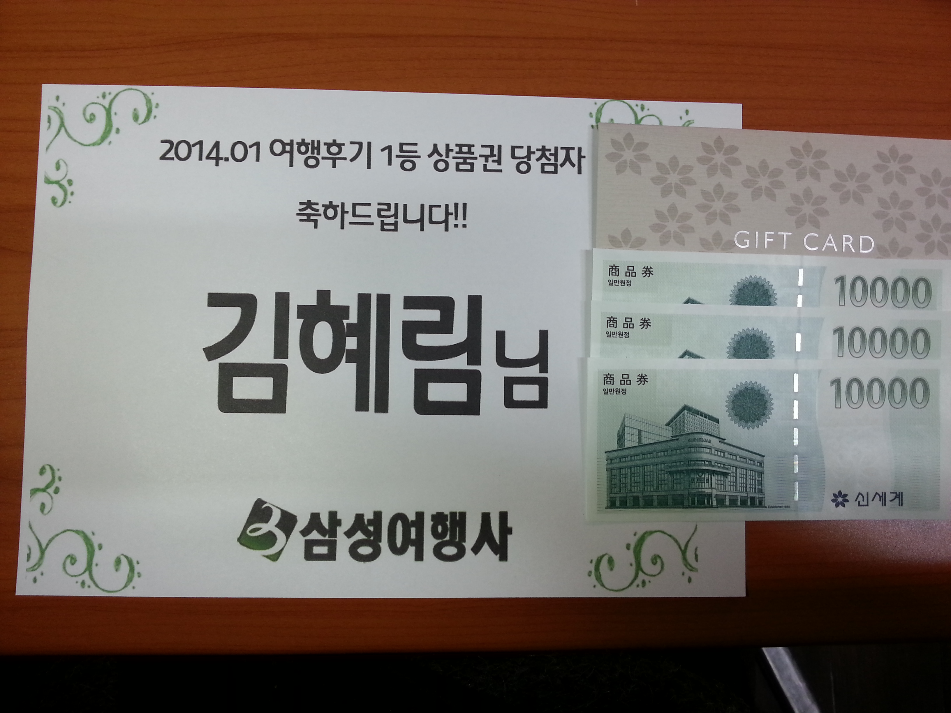 1등 백화점 상품권 당첨자 : 김혜림님 (010-xxxx-8584)
