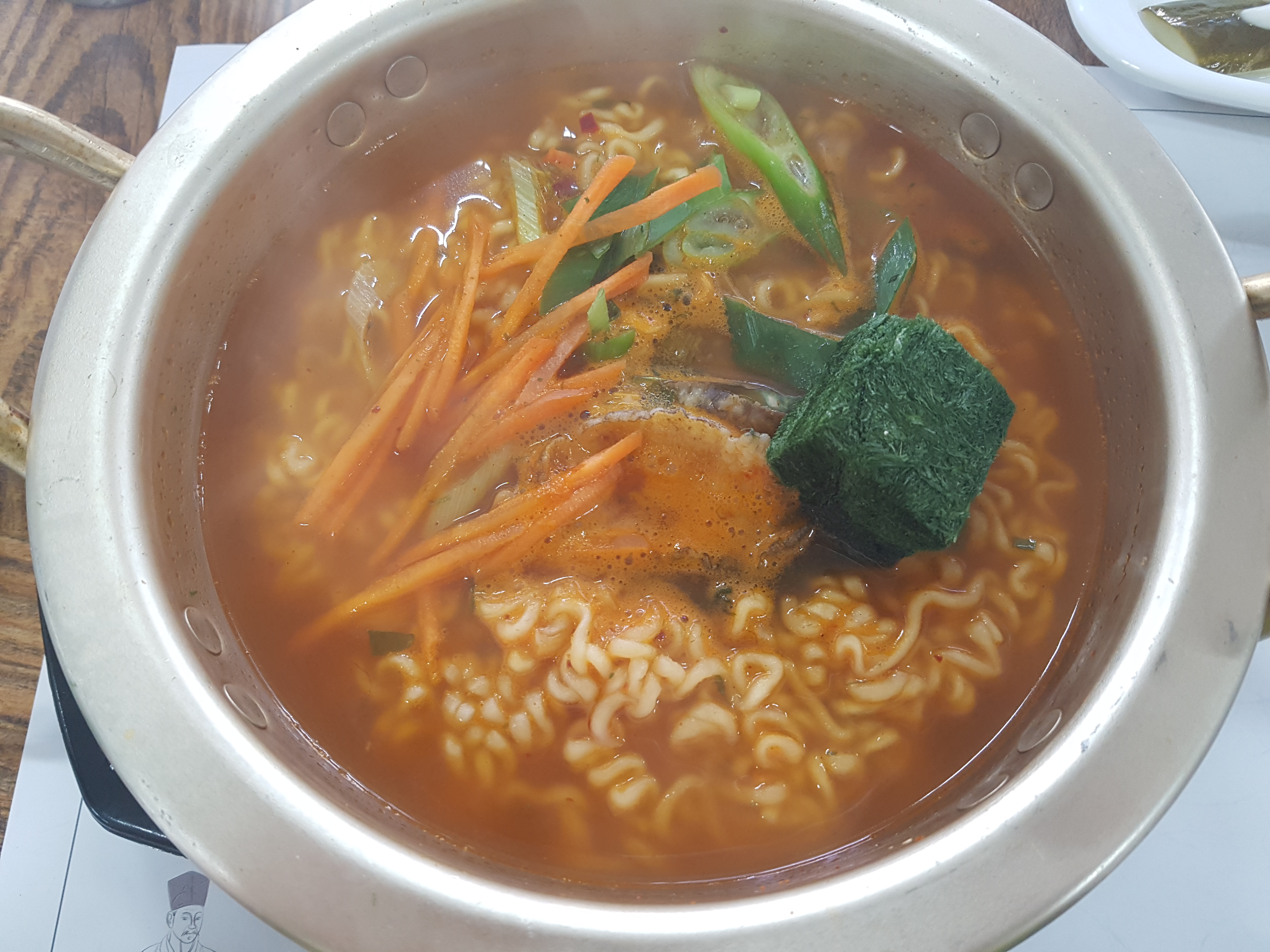 점심으로 "라면+전복+매생이"가 들어간 삼합라면을 먹었습니다.