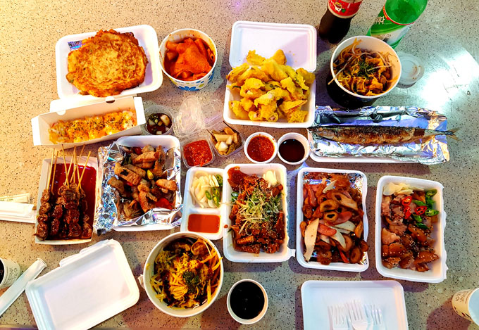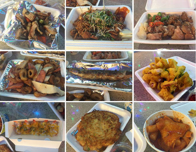 야시장답게 메뉴 (떡볶이, 튀김, 빈대떡, 닭발, 제주도흑돼지구이, 석쇠구이, 족발, 돼지껍데기,