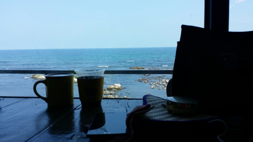 정신없이 멋진 배경으로 사진을 찍고  바다를 바라보는 멋진 카페에서 커피를 마사며 더위를 식히고