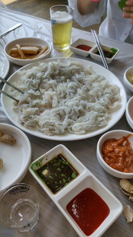 세꼬시횟감을 고르고 2층 전망좋은 자리를 잡고 맛나게 점심을  먹었습니다.