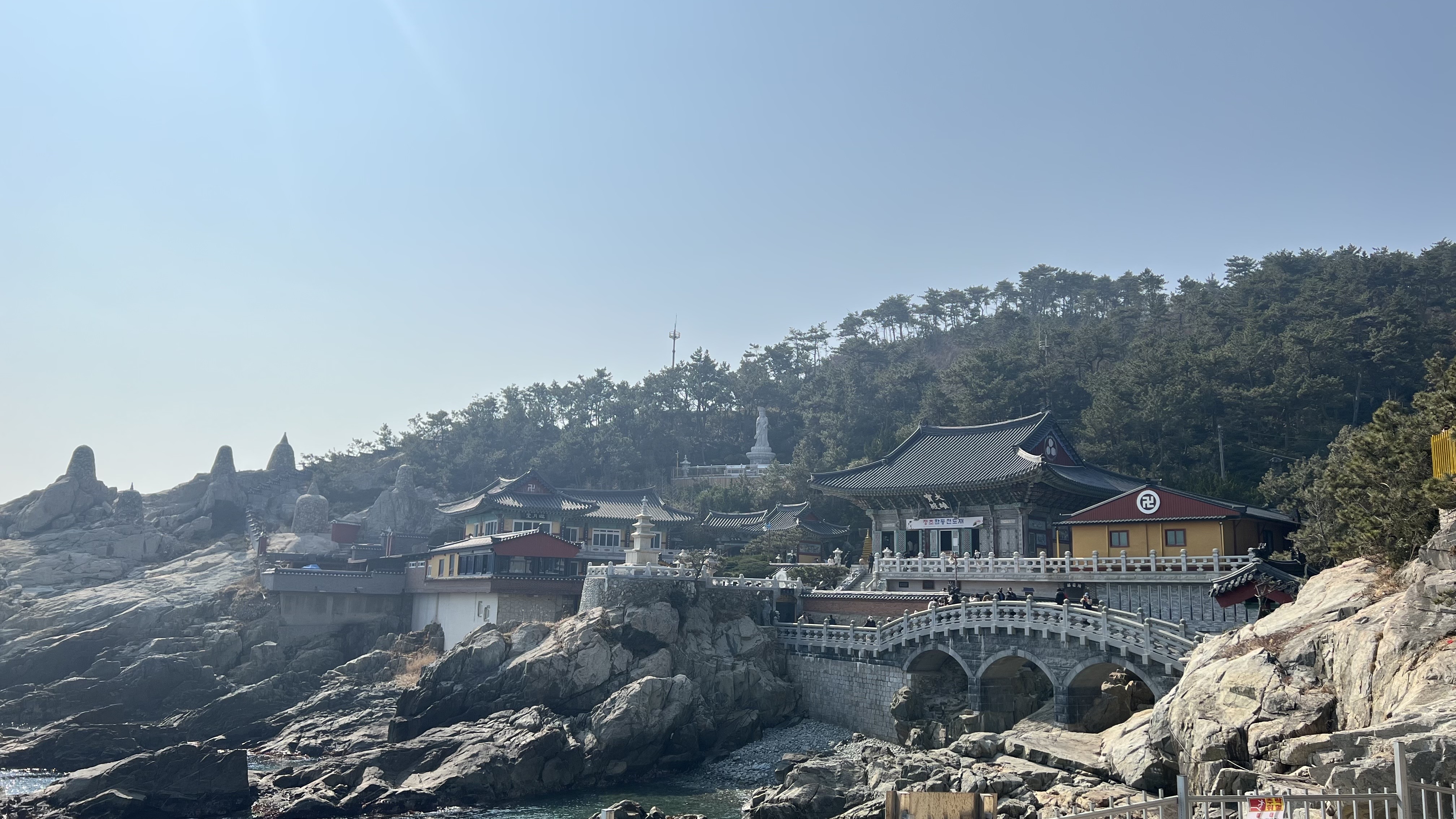 한파로 인해 많이 추울까 걱정 했지만 봄기운 가득한 토요일 주말 날씨에 통도사 홍매화를 보러 부산으로 출발하였어요. 부산 기장 용궁사를 오랜만에 방문했는데 앞에는 바다 뒤에는 산이 있는 절이 따뜻한 날씨와 너무 잘 어울렸어요. 용궁사 앞의 바다를 보며 힐링하고, 대웅전에 가서 소원도 빌고, 기장시장으로 가서 점심을 먹고, 기장시장은 역시나 바닷가 근처라 해산물과 대게가 유명한지 대게 맛집이 많았어요. 기장시장을 한번 둘러보고, 봄의 첫 꽃이 피는 통도사 홍매화를 보러 통도사를 향하는 길인 "무풍한솔길"의 멋진 소나무가 쭉 이어진 길을 따라 올라가 세계문화유산인 통도사를 보고, 홍매화나무를 찾았어요. 많이 피지는 않았지만 그래도 빨갛게 물어진 꽃봉우리들을 볼 수 있었어요.