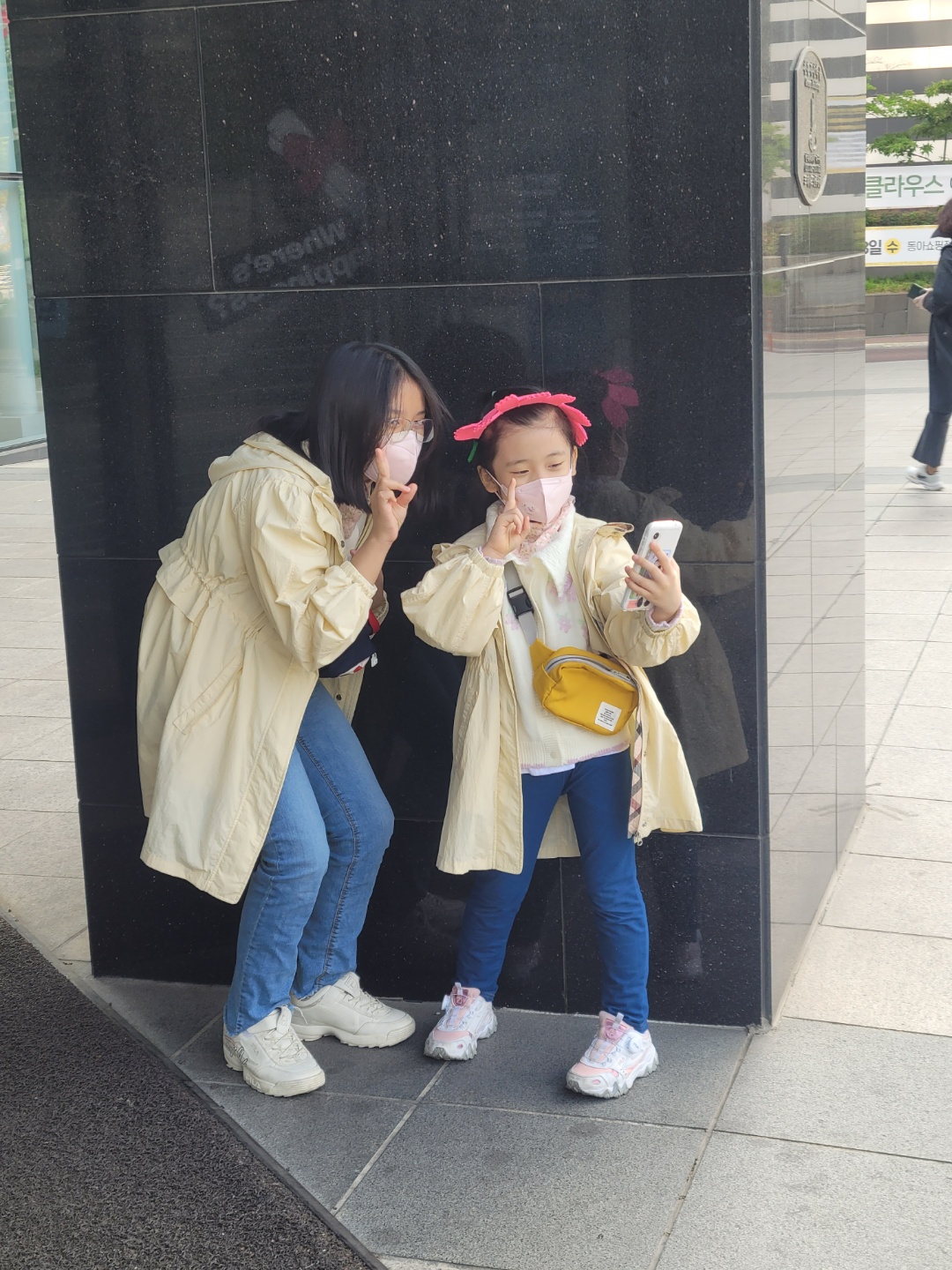 어느덧 출발 아침 아이들은 많이 들떠있었다. 현대백화점 근처에 주차를 하고 버스를 기다리는 그 시간 아이들은 지루할 틈 없이 재미있나보다!