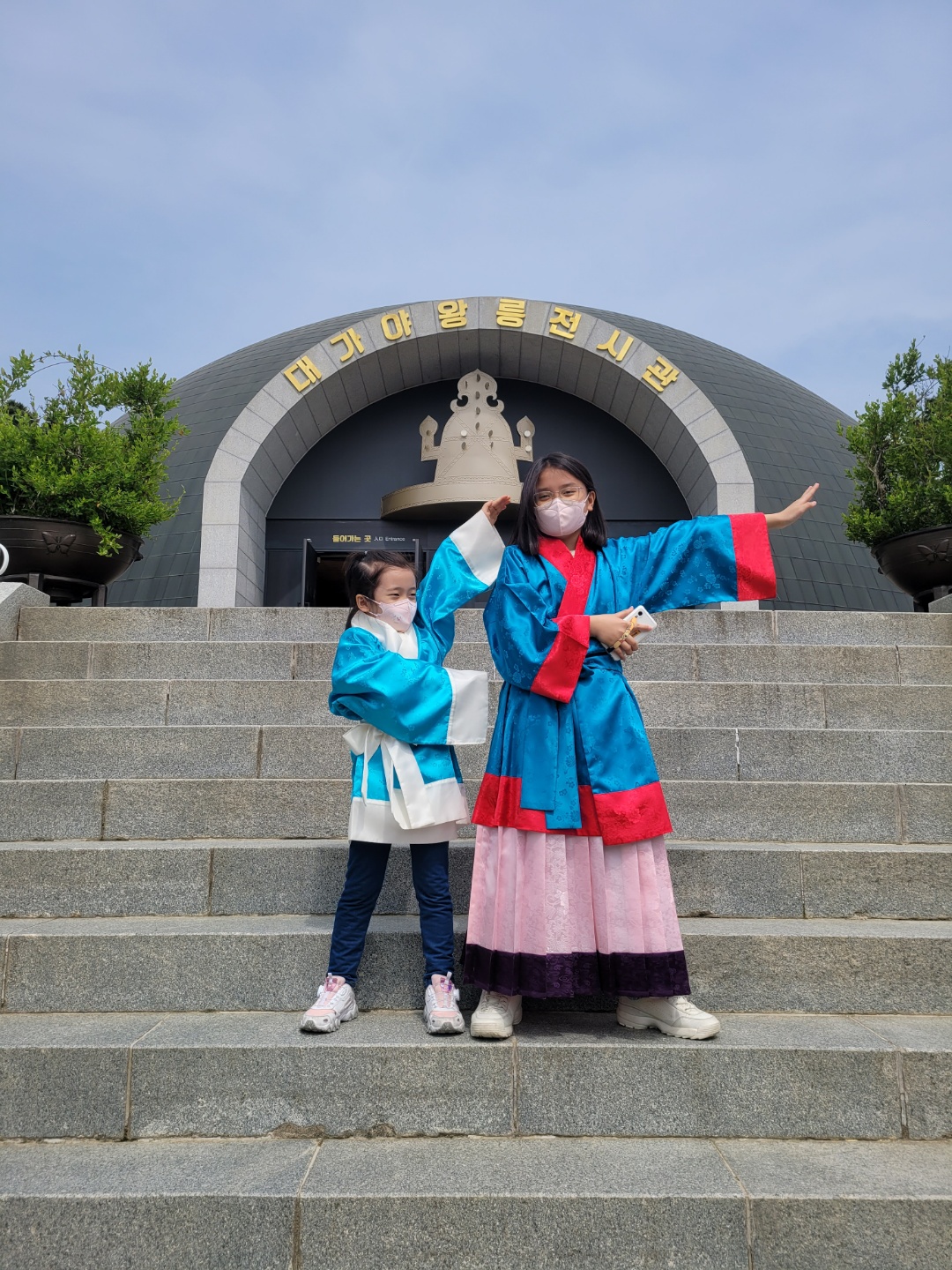 대가야 박물관에서 각종 유물들과 고분이 만들어지는 과정 고분 내부등 흥미로운 내용들을 둘러보고 나와보니 복식체험이 기다리고 있다.