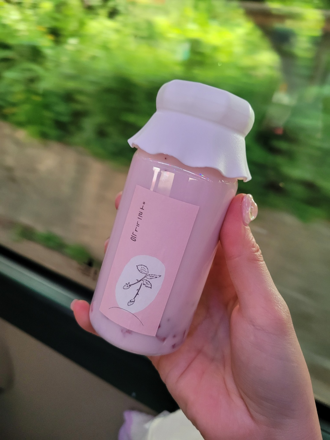 크게 달지 않은 건강한 딸기우유에 아삭거리는 딸기식감이 어울어져 꽤 맛있었다 ㅎㅎ