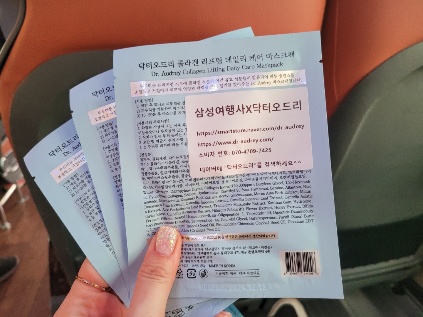 집에와서 아이들과 얼굴에 하나씩 붙히고 있었는데 15분이 지나도 에센스가 그득해서 팔에도 바르고 다리에도 바르고 ㅎㅎ 좋은 것 같아서 찾아보니 한장에 거의 4천원짜리. 와! 대박 비싼거였어! 이걸 그냥 주다니! 삼성여행사 스케일 대박!!!!