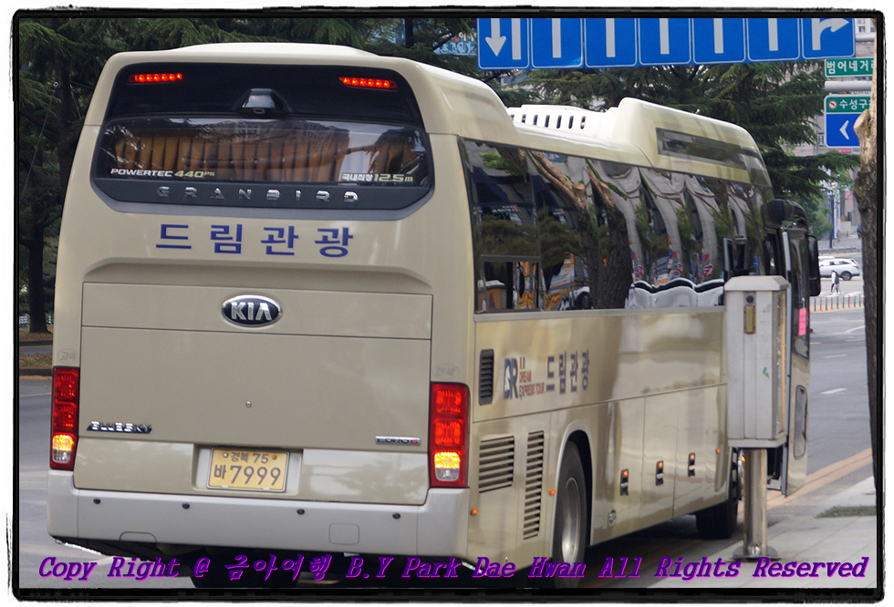 05월 08일 아침 탑승장소인 "법원 건너 농협" 에 도착하였습니다. 이 날 탑승할 버스로 드림관광 7999호 버스가 대기중이었으며 가이드님은 이지은 가이드님께서 수고해주셨으며 안전운행으론 드림관광 박호상 승무사원님께서 수고해주셨습니다.