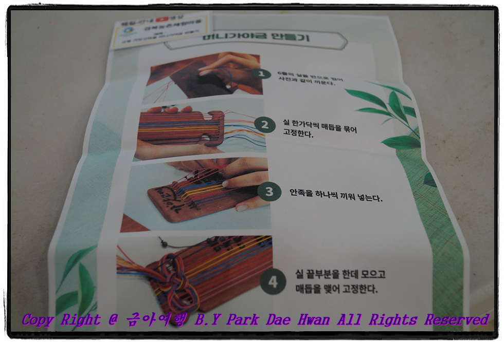 미니가야금 만드는 순서입니다. 강사님께서 잘 가르쳐 주시고 어르신분들께서 도와주시기도 합니다..^^ 정 모르겠다 싶으시면 "경북농촌체험마을" 유튜브 채널 보셔도 됩니다..^^ 미니가야금만들기 체험 후 철기방으로 이동하여 대장간 체험도 하였습니다. 강사선생님께서 도와주셔서 함께 만든 미니가야금과 철기방에서 대장간체험하여 만든 작품 입니다.