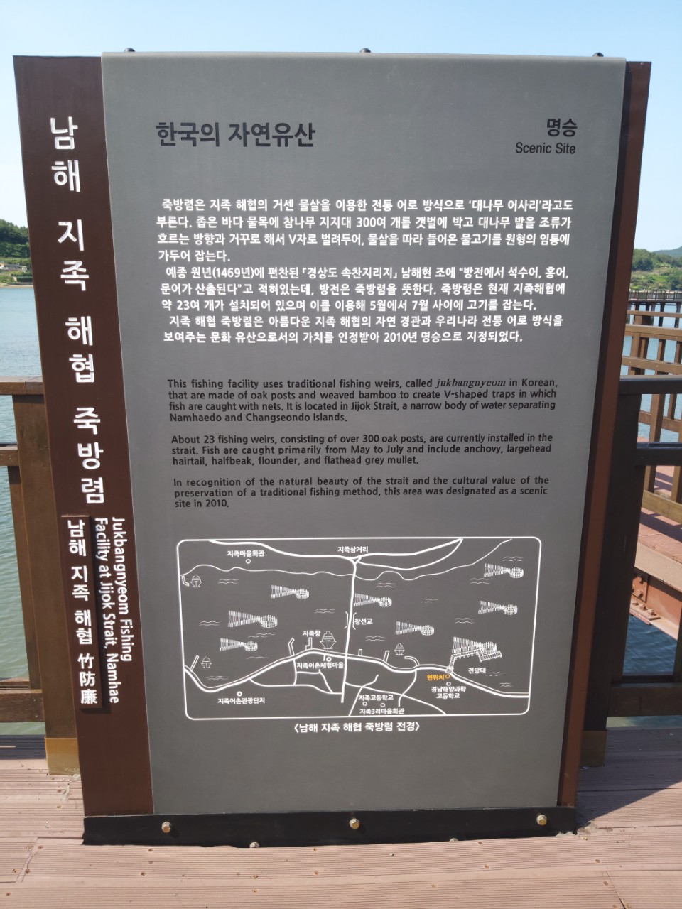 금산 보리암은 처음으로 방문하였는데 경치가 너무 좋았어요. 남해 바다도 보이고, 산에 바위도 참 좋았어요. 보물섬 전망대는 위치가 너무 좋아서 사진도 많이 찍고 했는데 까페를 이용하는 분들만 이용한다고 해서 부랴부랴 사진찍다가 내려와서 좀 아쉽긴 했네요. 일정상 좀 늦은 시간에 남해전통시장에서는 멸치쌈밥을 시켜서 아내와 오붓하게 맛나게 먹었네요. 식사를 마치고 죽방렴관람대를 관광하였는데 옛날방식은 멸치 잡는 방법이 신기하기만 했네요. 다음은 남해각을 방문해서 남해대교 배경으로 찍고 북유럽의 자연의 나라인 핀란드, 노르웨이 처럼 아내와 사진도 많이 찍었네요. 마지막으로 이순신장군순국공원으로 도착해서 가이드님의 안내로 첨망대까지 오솔길을 걸으며, 기분좋은 남해의 경관들을 보고 왔네요. 오랜만에 아내와 즐거운 여행을 하고, 사진도 많이 찍고, 대화도 많이 하고 즐거운 하루였습니다. 다음에도 다른 코스로 신청할려고 합니다. 고맙습니다.