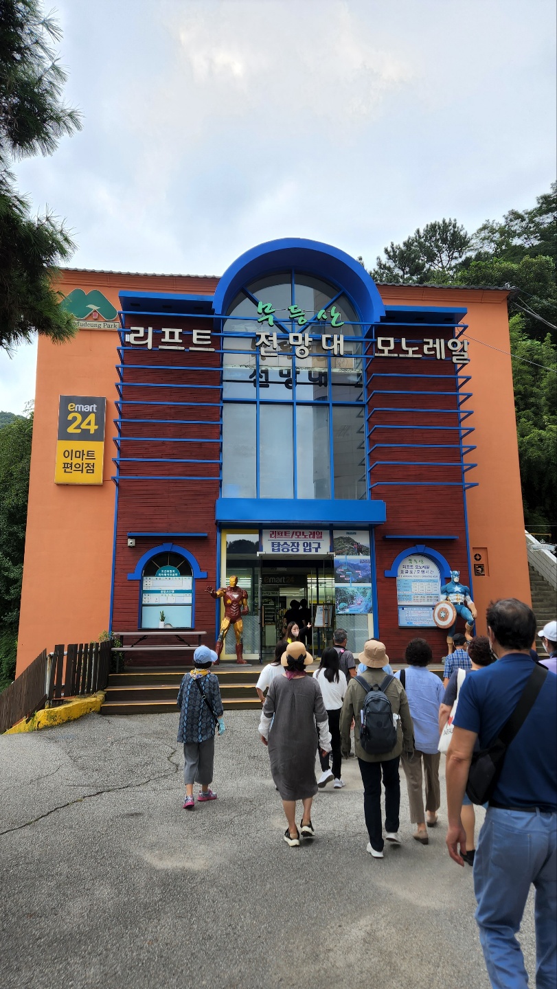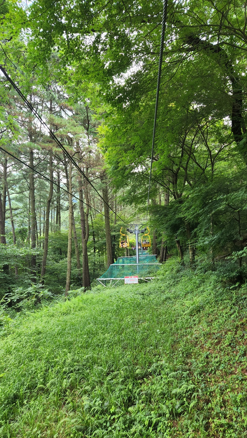 비가내려서 인지 숲속 가득 습함과 더위가 사릴것이라고 리프트 알바분이 한말을 체감했다. 리프트 15분 남짓 타고 내리니 거의 정상에 다달았지만, 팔각정까지는 도보로 15분 더 가야한다. 5분남짓 걸으니 모노레일이 나왔고 모노레일 운영시간도 따로 있는데 맞지않기도 하고 유료이용이라 우리는 도보로 갔다.