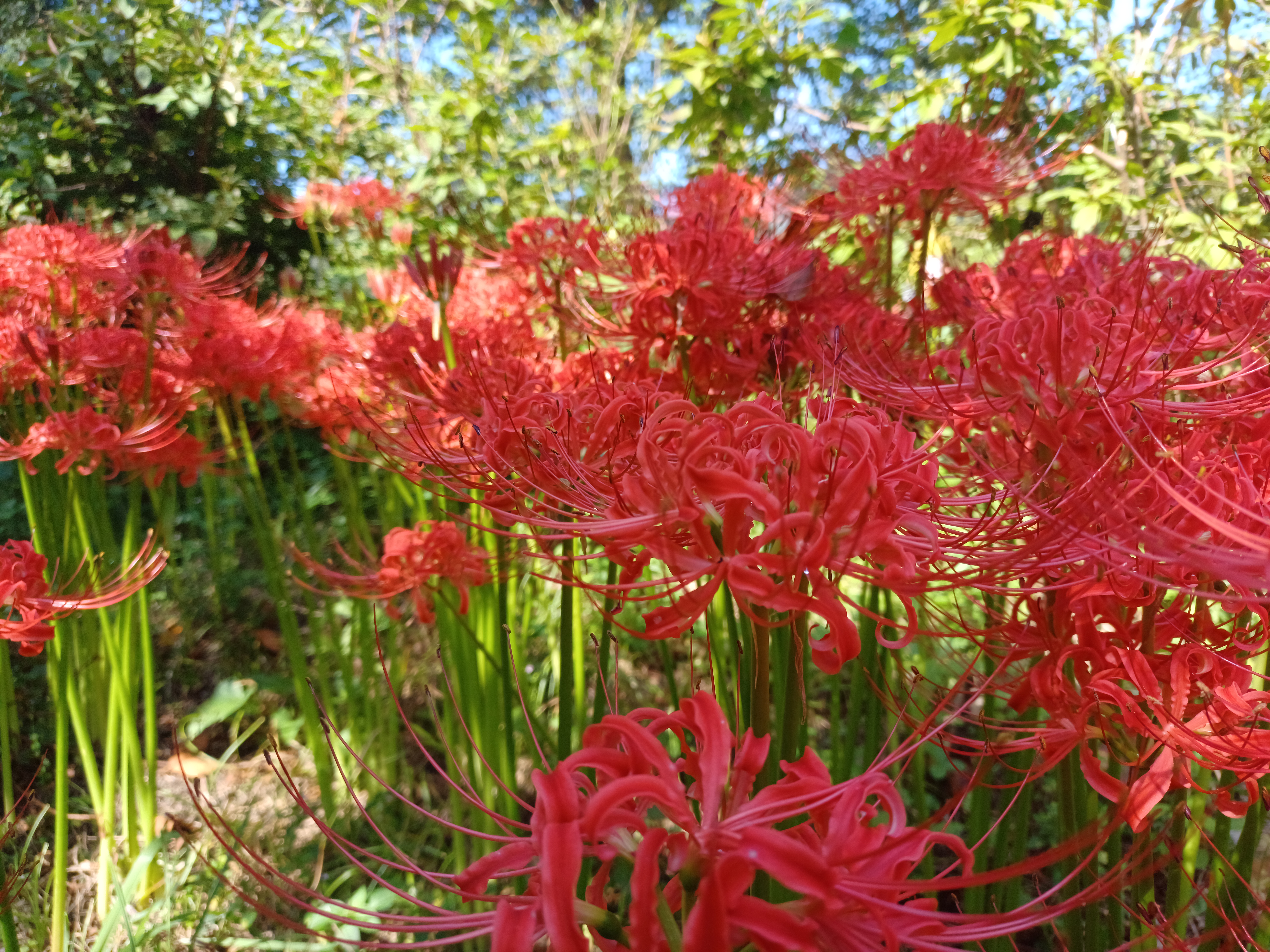 도솔산 북쪽 기슭에 있는 선운사 올라 가는 산자락과 가는 곳곳에 피어 있는 9월의 꽃무릇 8월에 피는 꽃은 상사화라고 부르고 색이 약간 분홍색에 가까우며 9월에 피는 꽃무릇은 붉은 색이 황홀할 정도입니다. 이번 주도 예쁘지만 다음주는 더욱 더 많이 피어나 화려함을 뽐낼 것 같습니다. 빼어난 자연 경관과 소중한 불교 문화재들은 지니고 있는 선운사이지만 이곳의 아름다음을 더욱 더 빛나게 하는 것이 꼿무릇이 피는 가을에 정점을 이루고 있다는 것입니다.