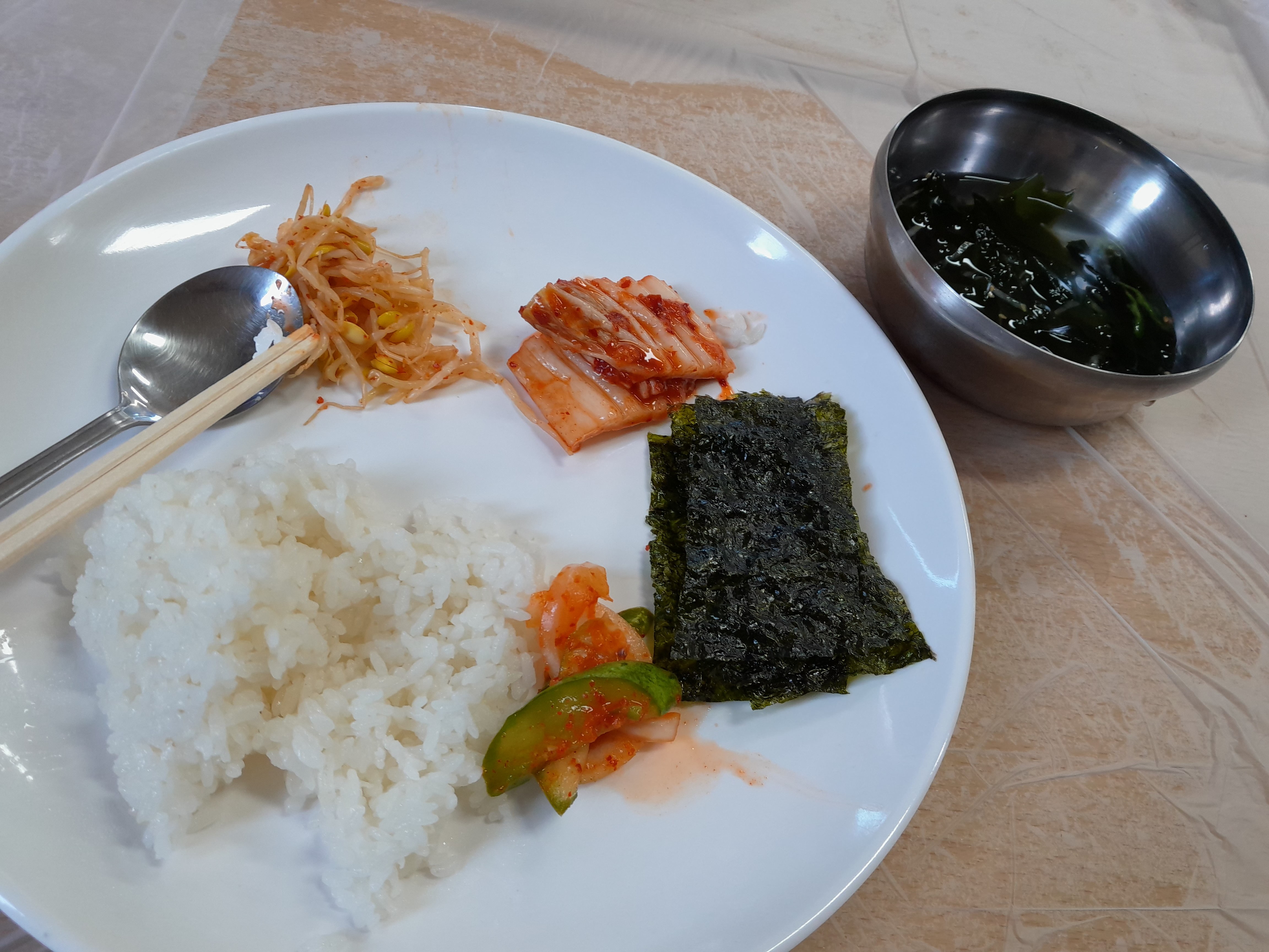 우리들의 영웅 탄수화물의 소유자 밥과 blush 콩나무, 배추김치, 김, 애호박 무침, 미역냉국이 오늘의 급식(?)이랍니다