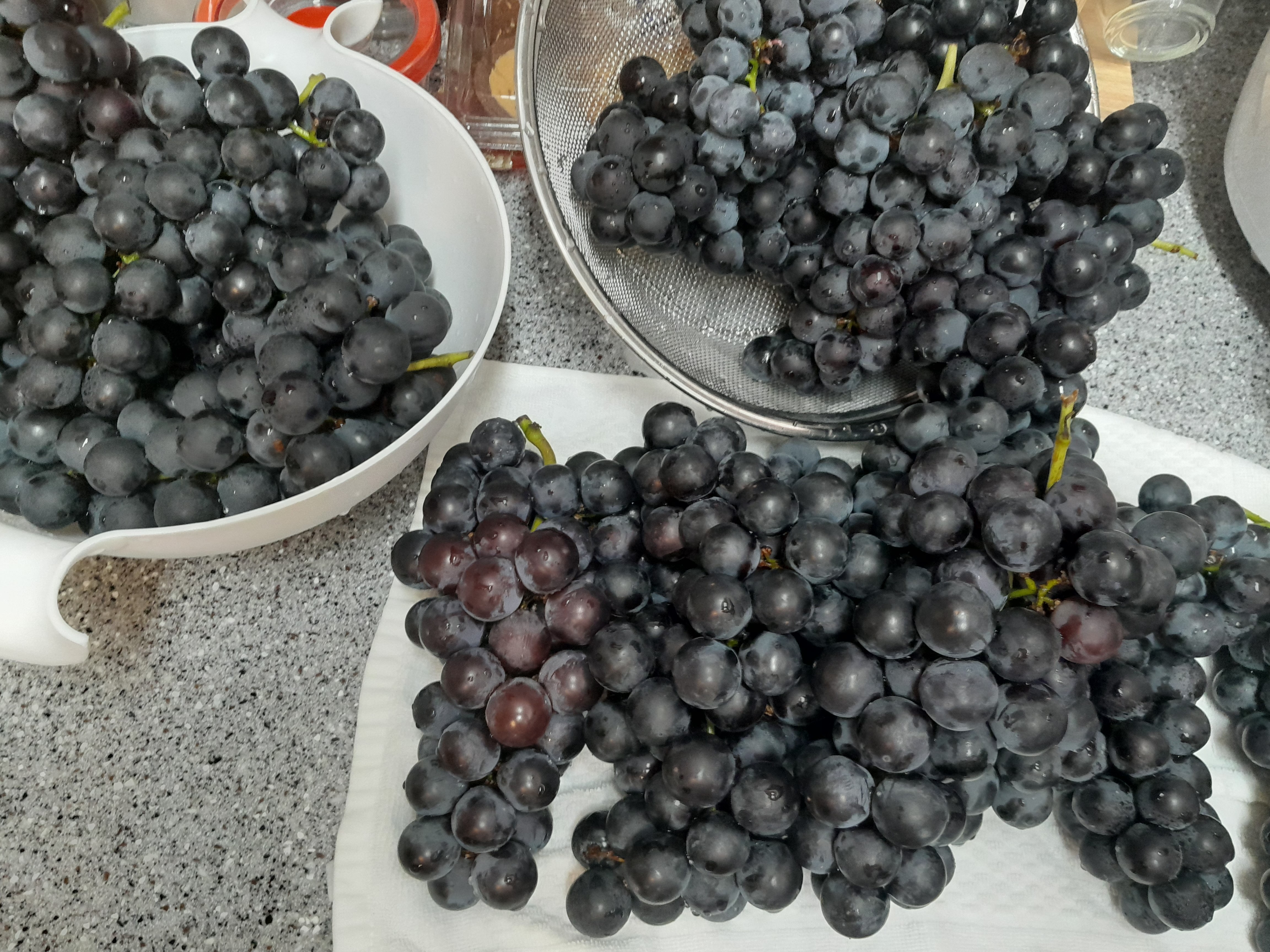 집에 와서 포도를 조심스럽게 놔두어봅니다