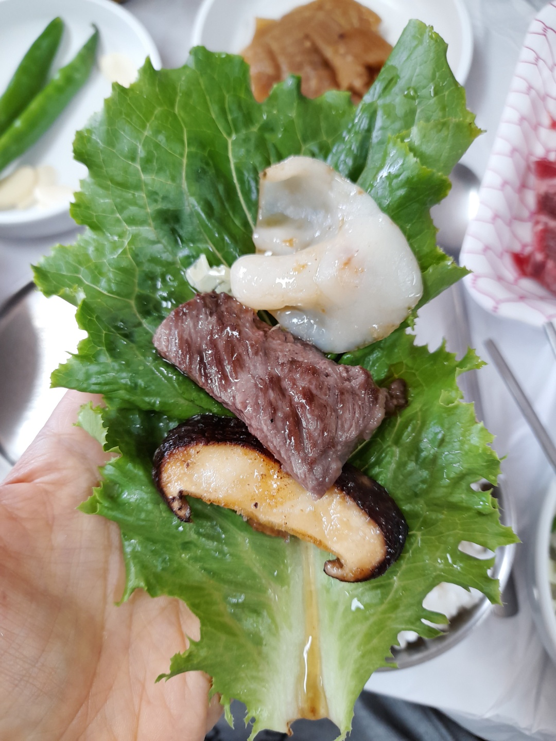 등심과 표고버섯은 너무 좋았으나 복어회를 떠올릴 정도의 투명한 관자는 좀 실망스러웠고