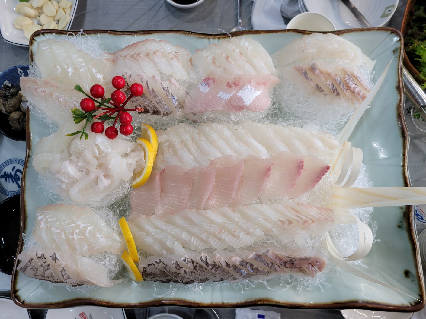안목해변에서 기념컷도 하고 경포해변을 바라보며 모듬회정식을 먹으며 정겨운 애기꽃을