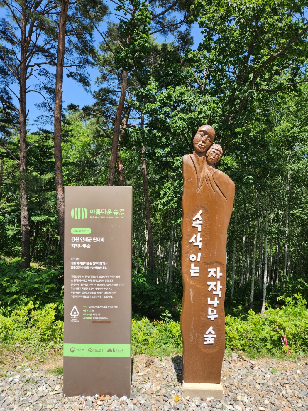 7시에 법원맞은편에서 출발하여 안동휴게소를 거처 원주휴게소에서 이른 점심을 먹고 인제 자작나무숲에 12시에 도착하여 트레킹을 시작하였습니다.