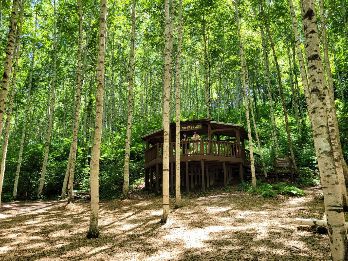 이른 아침 대구를 출발하여 인제 원대리에 도착 햇볕이 따가운 임도길을 올라 자작나무숲 군락에 도착하니 멋진 풍경에 탄성이 나오고 속초중앙시장과 영금정을 구경한 후 곰배령에 도착 삼겹살과 산나물이 풍성한 만찬을 즐기며 첫날을 보내고 2일차 아침 청량하고 맑은 공기를 마시며 계곡 물소리를 벗삼아 정상에 오르니 곰배령의 탁트인 정경이 벅찬 감동을 줍니다 표지석과 주변 배경으로 기념컷을 하면서 또 하나의 멋진 추억을 만들고 토종닭백숙으로 점심을 맛있게 먹으며 일정을 마무리합니다