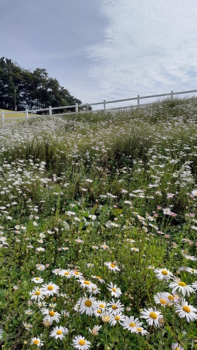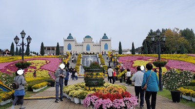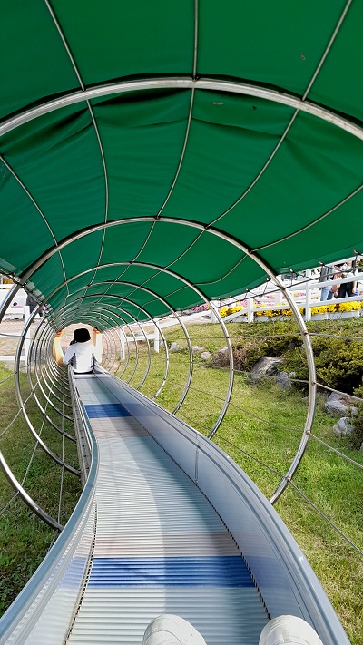 ![]() 우리 가족은 가장 먼저 사진을 찍으러 다녔다. 먼저 굉장한 언덕을 오르고 난 뒤 그곳에서 인생 사진을 얻었고 데이지 꽃밭에서도, 유럽풍 벤치에서도 사진을 찍었다. ![]() ![]() 사진을 찍고 나니 얼마 있지도 않았는데 땀이 뻘뻘 나서 쉬고 있었다. 갑자기 선선한 가을 공기가 땀을 식혀 주었다. 가을에 잘 온 듯하였다. 주위를 둘러보는데 염소 소리와 소 소리가 나길래 살펴봤는데 염소떼 목장이 있는게 아닌가. 그곳에서 염소에게 풀을 먹여주었다. 그중에서 가장 큰 염소가 계속 얼굴을 갖다 대길래 살짝 무서운 나머지 옆에 있던 작고 순한 황갈색 염소에서 나뭇잎을 거의 다 주었다.