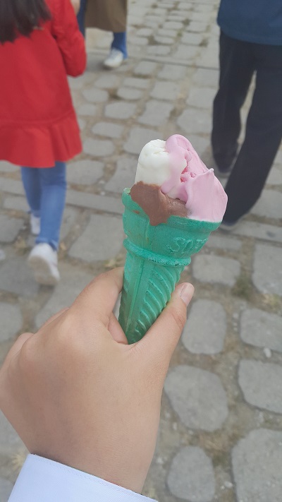 갓 구운 피자를 먹을 곳을 찾다가 근처 의자에 앉아서 먹었다. 하지만 피자는 모두 맛있었다. 열심히 만들었는지라 더 그렇게 느껴졌던 것 같다. 그러고 나서 임실치즈테마파크의 경치를 좀 더 구경했다. 꽃이 가을인데도 불구하고 예쁘게 펴서 좋은 사진이 많이 나왔다. ![]() ![]() 버스 타기 전에 우리는 터키 아이스크림점을 발견하고 기대를 하며 계산대로 갔다. 예상대로 어떤 아저씨가 “못 잡겠지~”하면서 아이스크림을 줄 듯 말 듯 했다. 고생 끝에 받은 아이스크림은 엄청 쫀득하고 맛있었다.