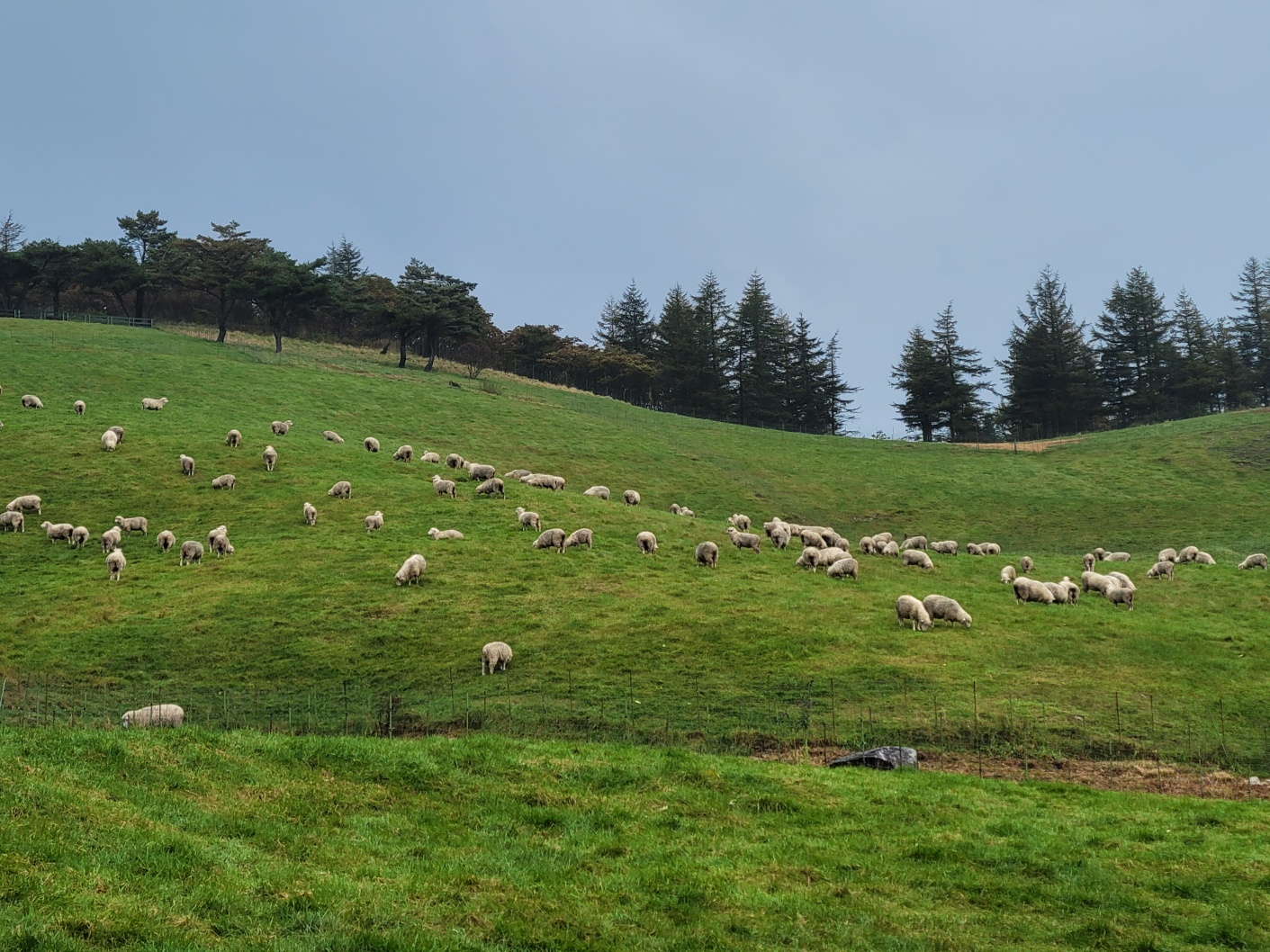 가을비속에 양떼목장 길을 산책하며 양들에게 건초주기 체험도 합니다
