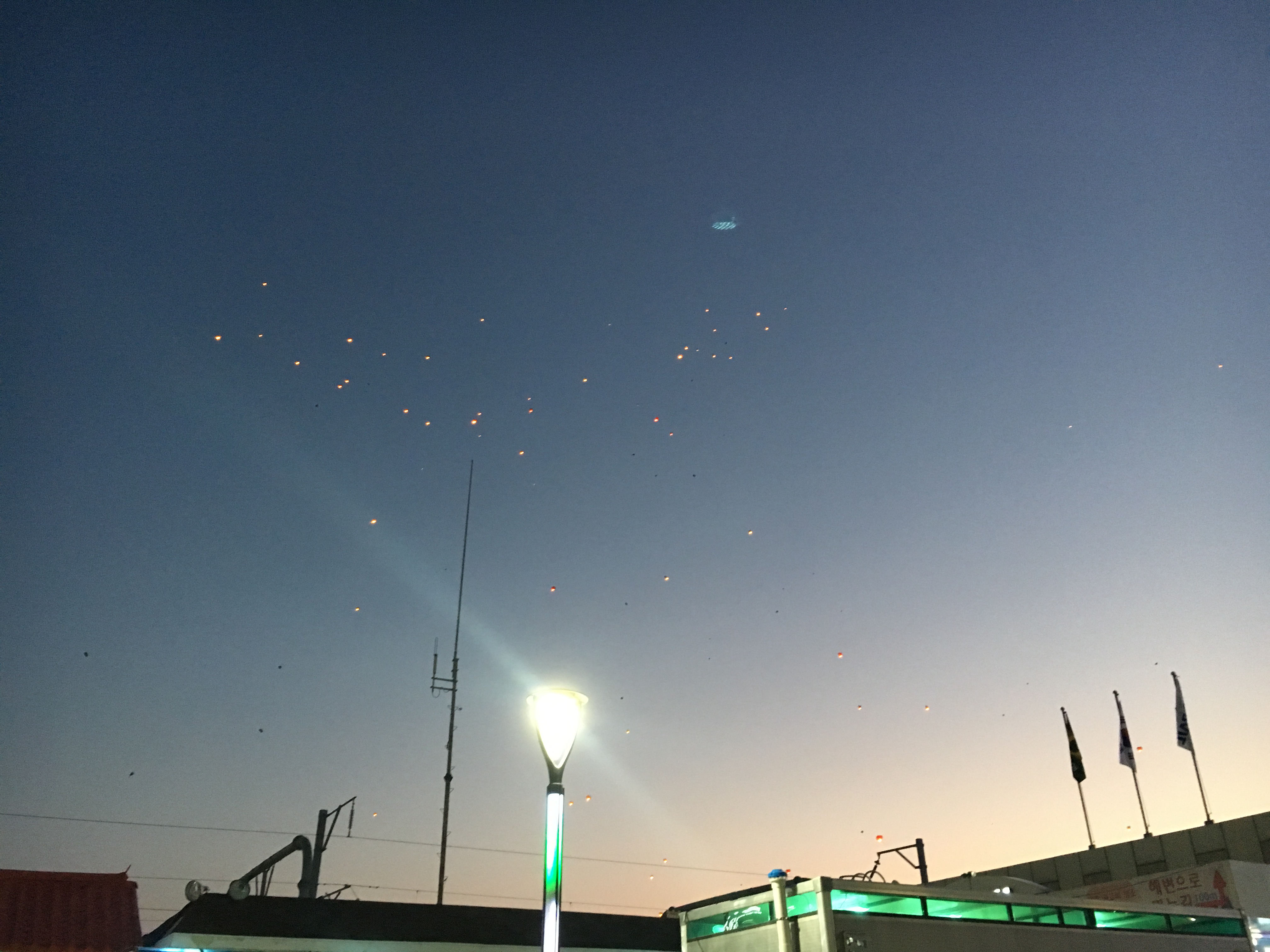 정동진에 도착했을 때보다 점점 밝아지고 있고 아직 풍등이 하늘에서 날고 있었습니다.