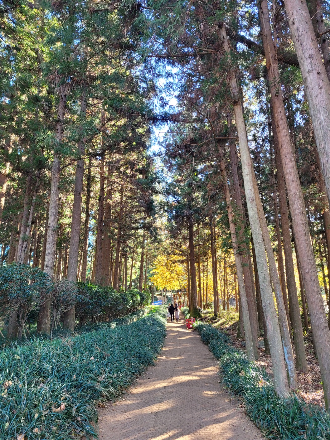 우드랜드 편백나무숲의 맑은 공기를 마시며 힐링을 합니다