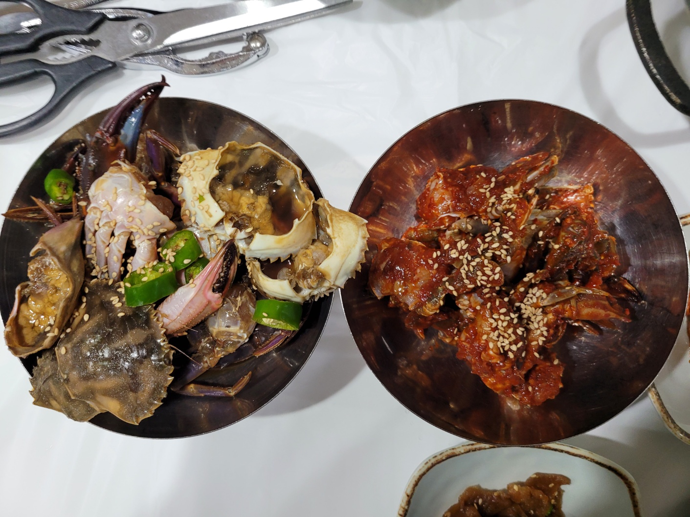 간장,양념게장과 갈치조림으로 만찬을 즐기며 첫날을 보내고