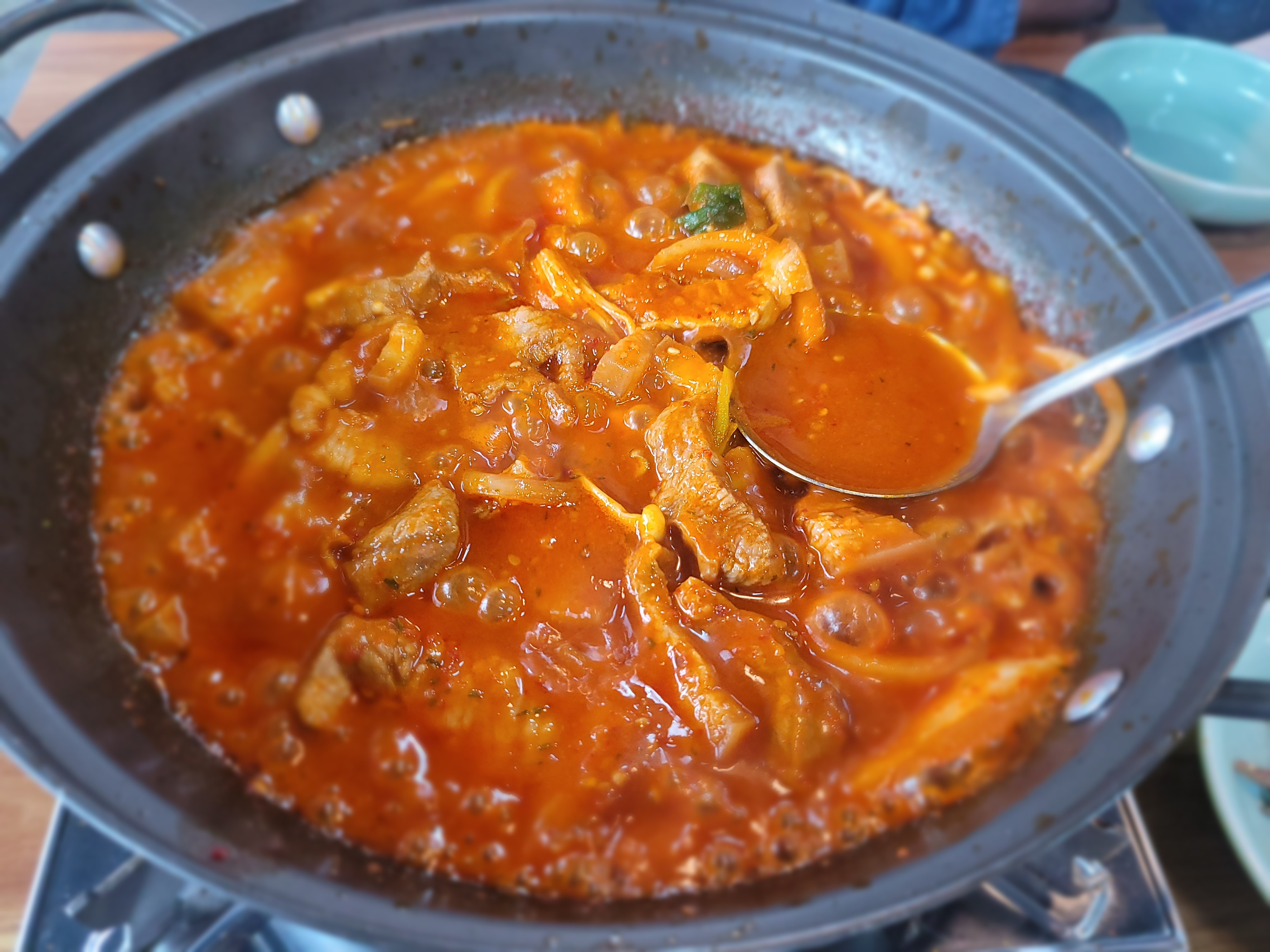 거리가 상당해서 휴게소 2곳을 거쳐 해남웰빙음식촌에 도착, 가이드님이 가게 3곳 정도를 소개해주셔서, 두꺼비식당에서 제육뽁음을 배부르게 먹고, 이쁜 작은 카페에서 차한잔 마시며 힐링했다.