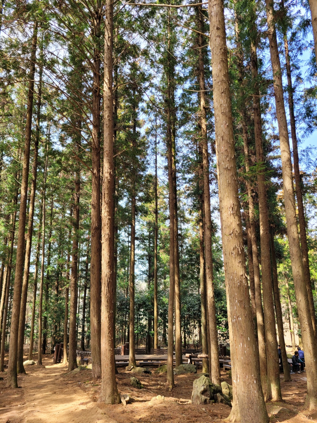 우드랜드 편백나무숲의 맑은 공기를 마시며 힐링을 합니다