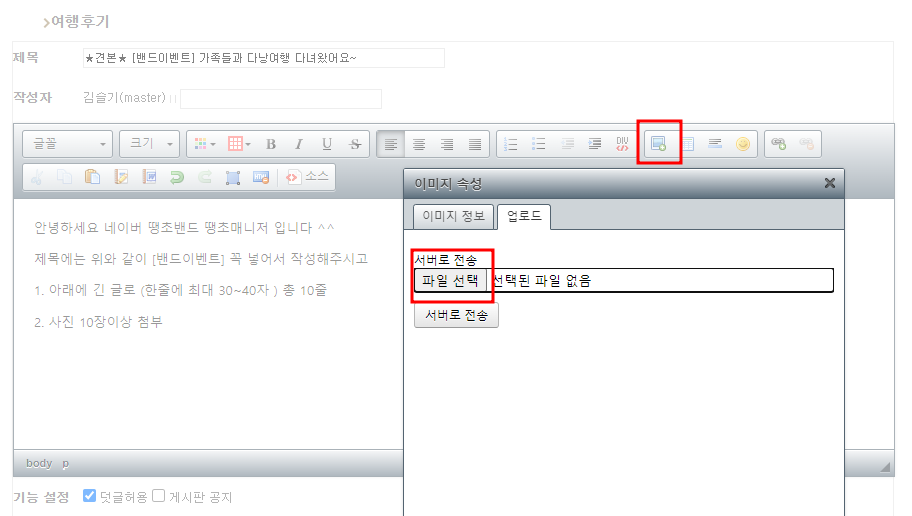 1. 제목에는 위와 같이 [밴드이벤트] 꼭 넣어서 작성해주십시요!