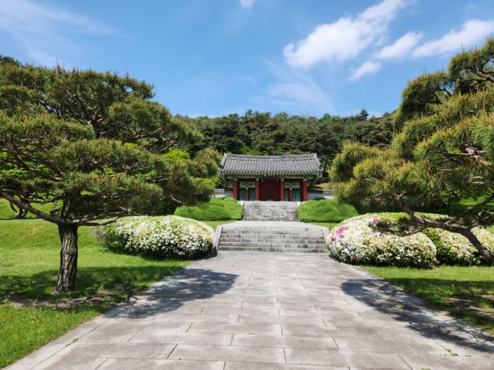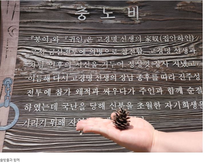 포충사 앞에 가면 qr코드로 설명이 잘 되어 있더라구요. 마지막에는 솔방울과 함께 사진한 컷!