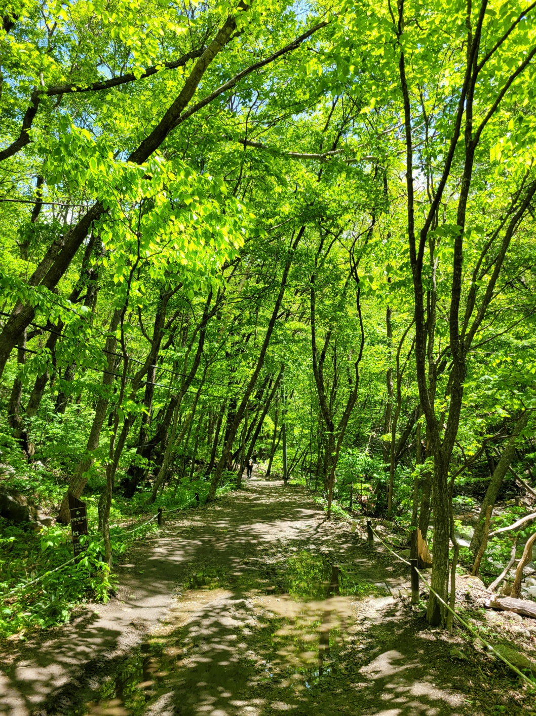2일차 아침 청량하고 맑은 공기를 마시며 계곡 물소리를 벗삼아 초록빛으로 물든 산길은
