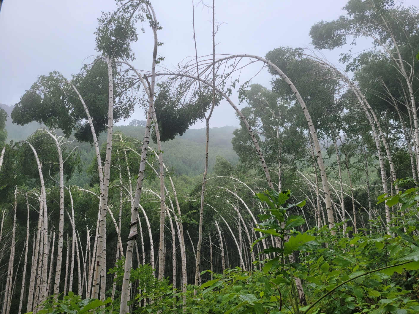 인제 원대리에 도착 임도길을 따라 자작나무숲 군락에 도착하여 멋진 풍경을 감상하고