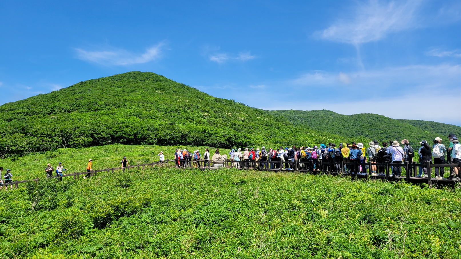 곰배령의 탁트인 정경과 표지석을 배경으로 기념컷을 하면서 또 하나의 멋진 추억을 만들고