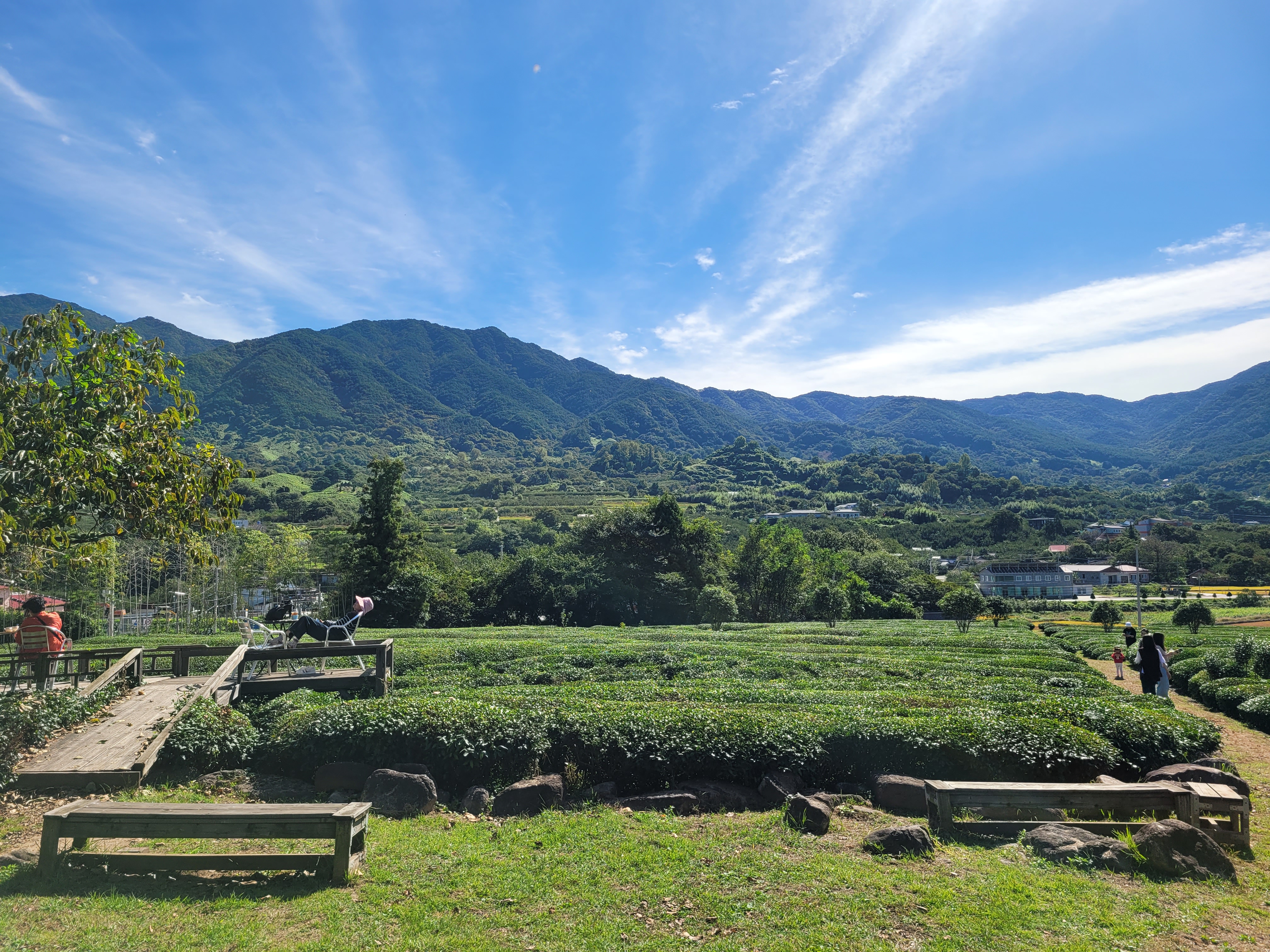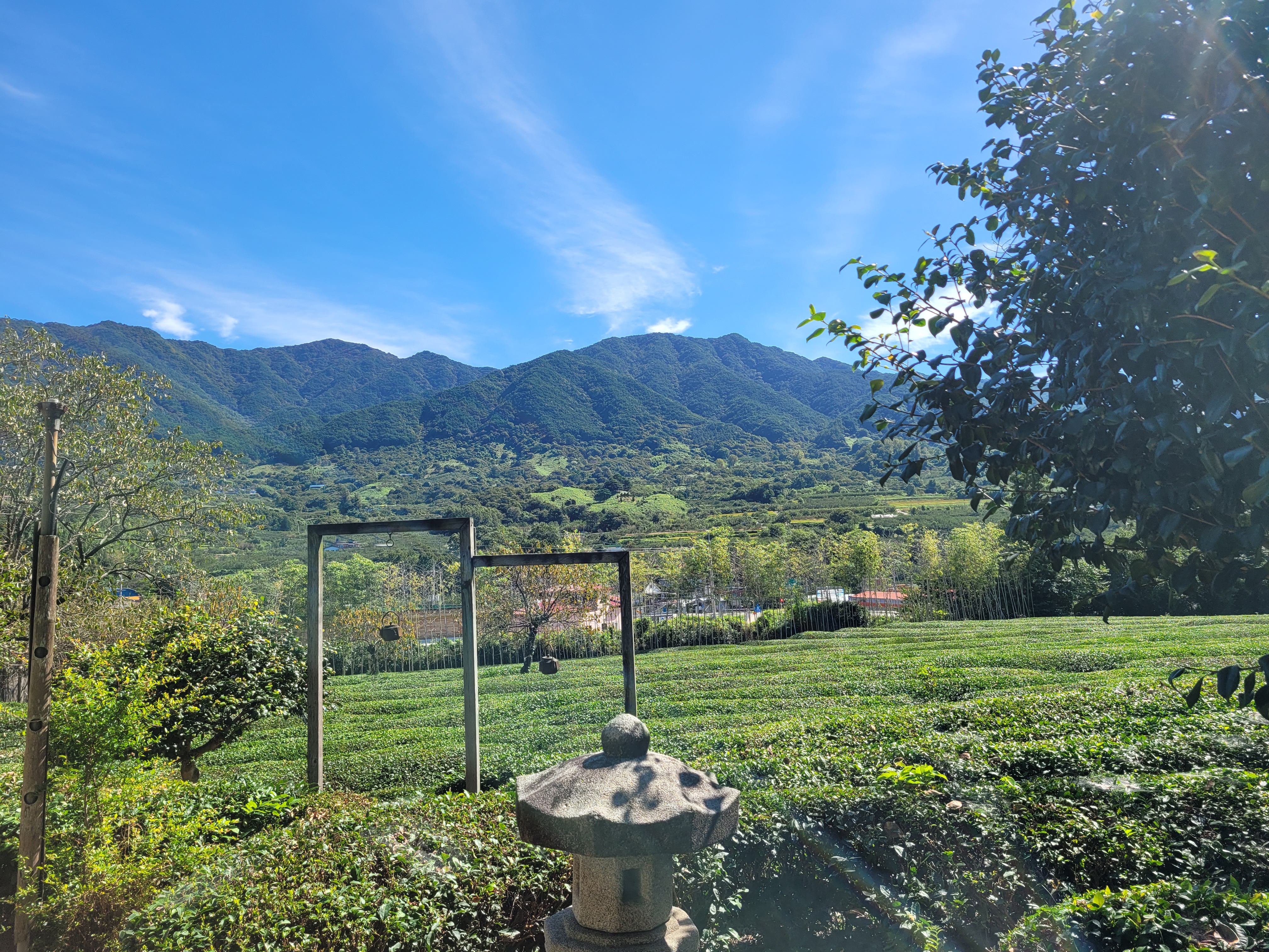 눈앞에 펼쳐져있는 그림같은 초록 녹차밭 배경과 함께, 카페에서 제공하는 매암홍차(아이스)를 마시니 힐링되는 느낌이었다.