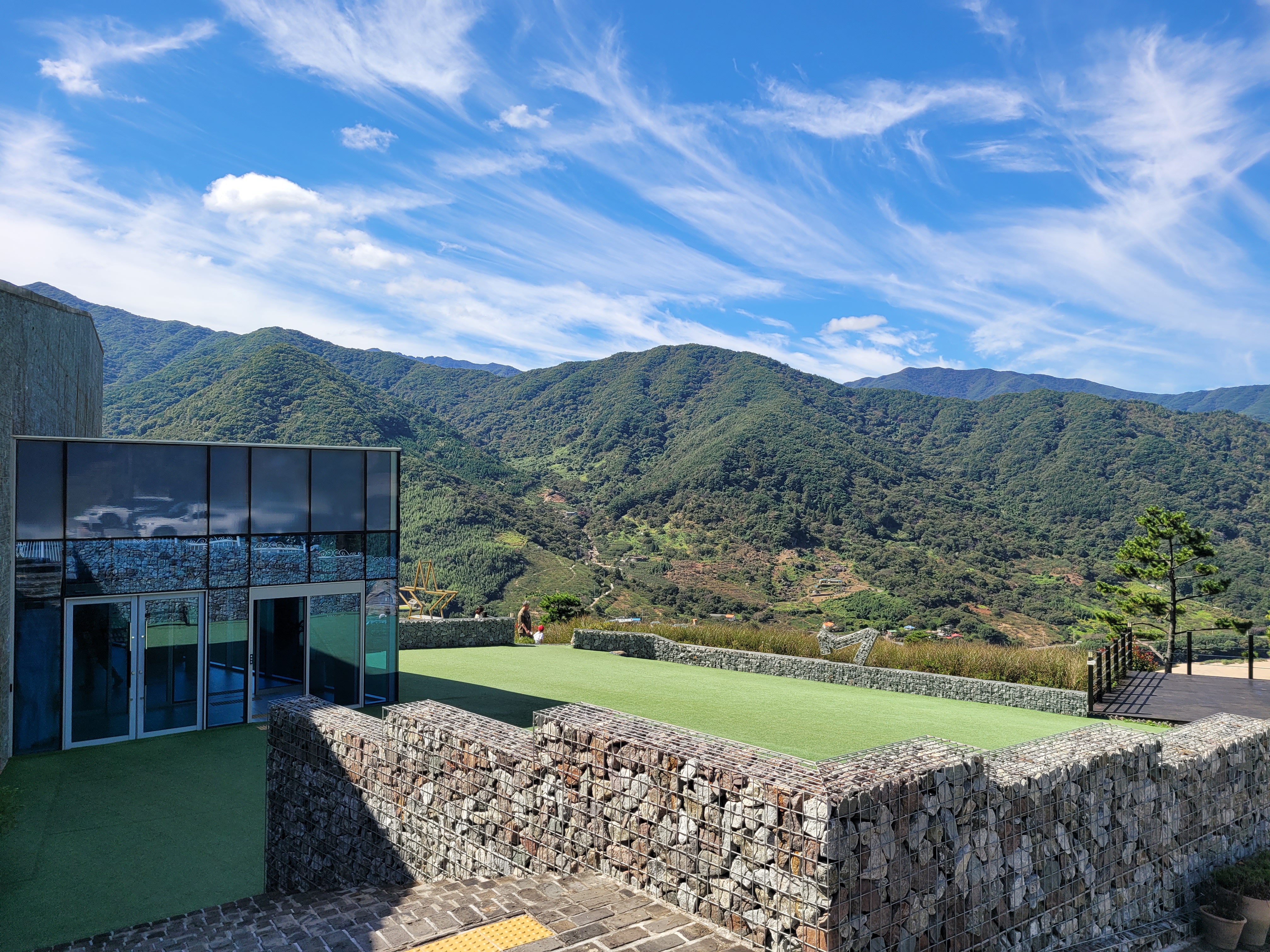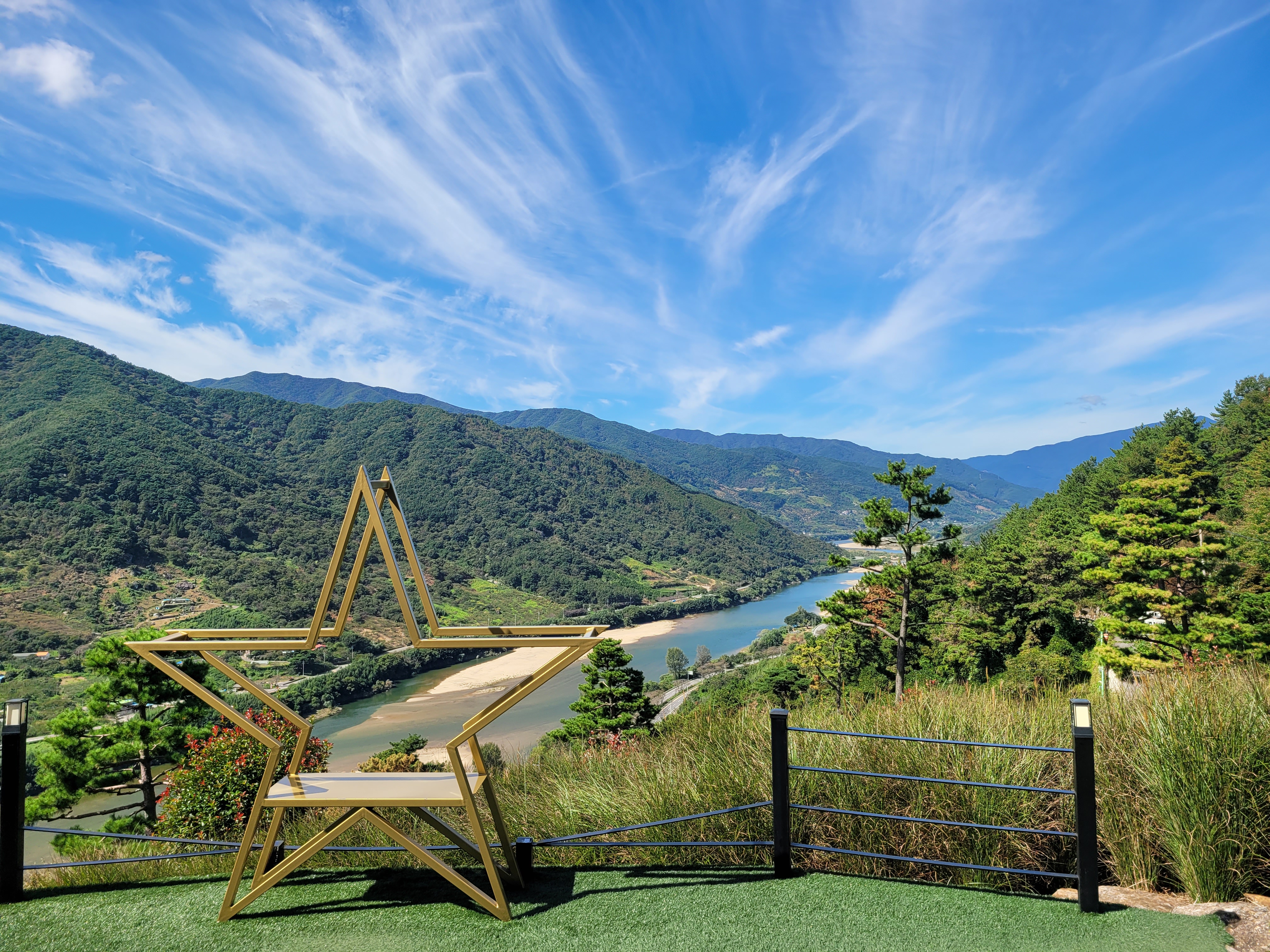 고지대 스타웨이 하동에서 바라본 드라마 토지의 배경인 평사리 들판과 섬진강 물줄기가 장관이었고, 1층 카페, 3층엔