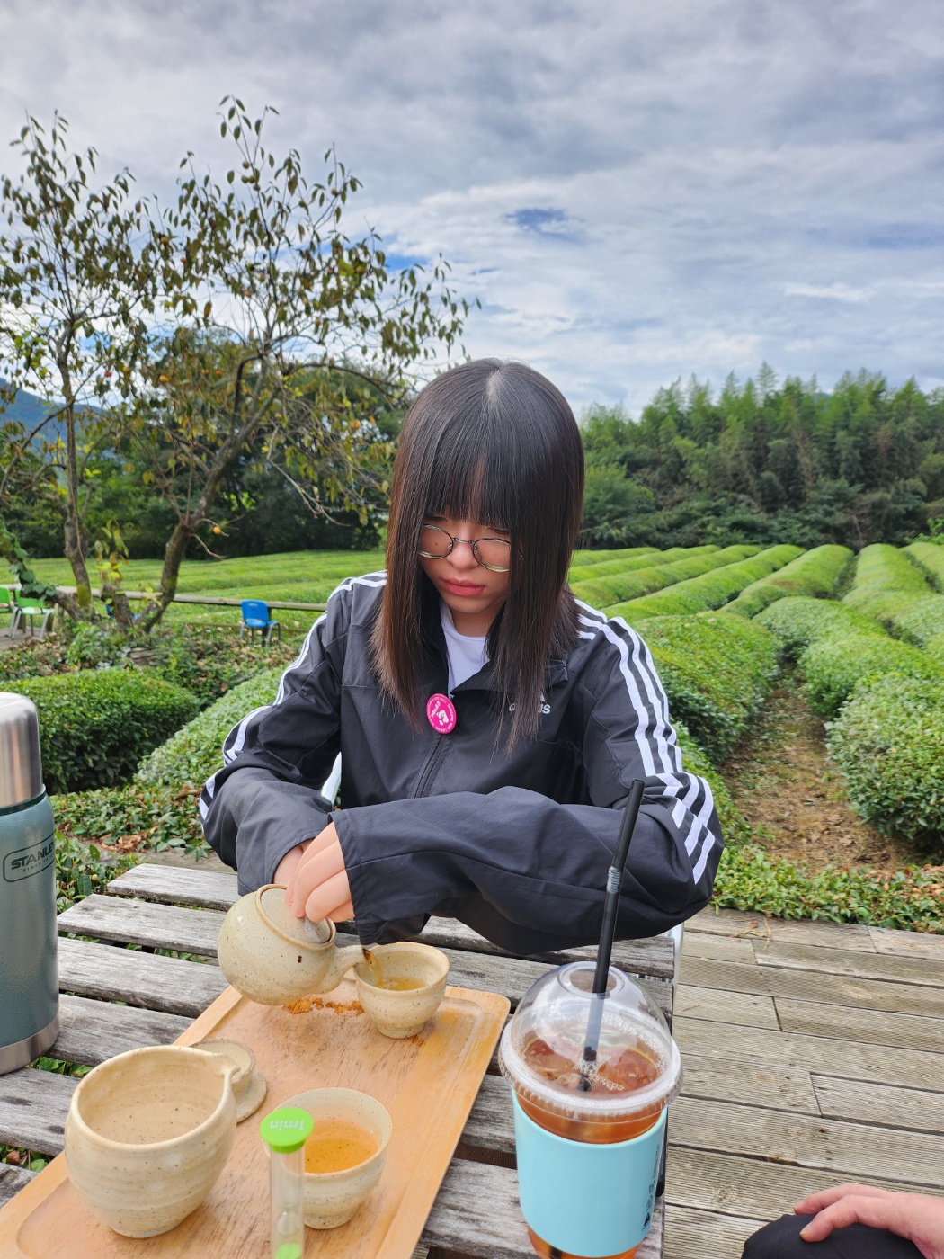<매암제다원과 매암차문화박물관>에 도착하여 삼성여행사에서 제공하는 고소홍차 체험시간을 녹차 밭에 자연친화적인 야외 카페에서 여유롭게 가졌다.