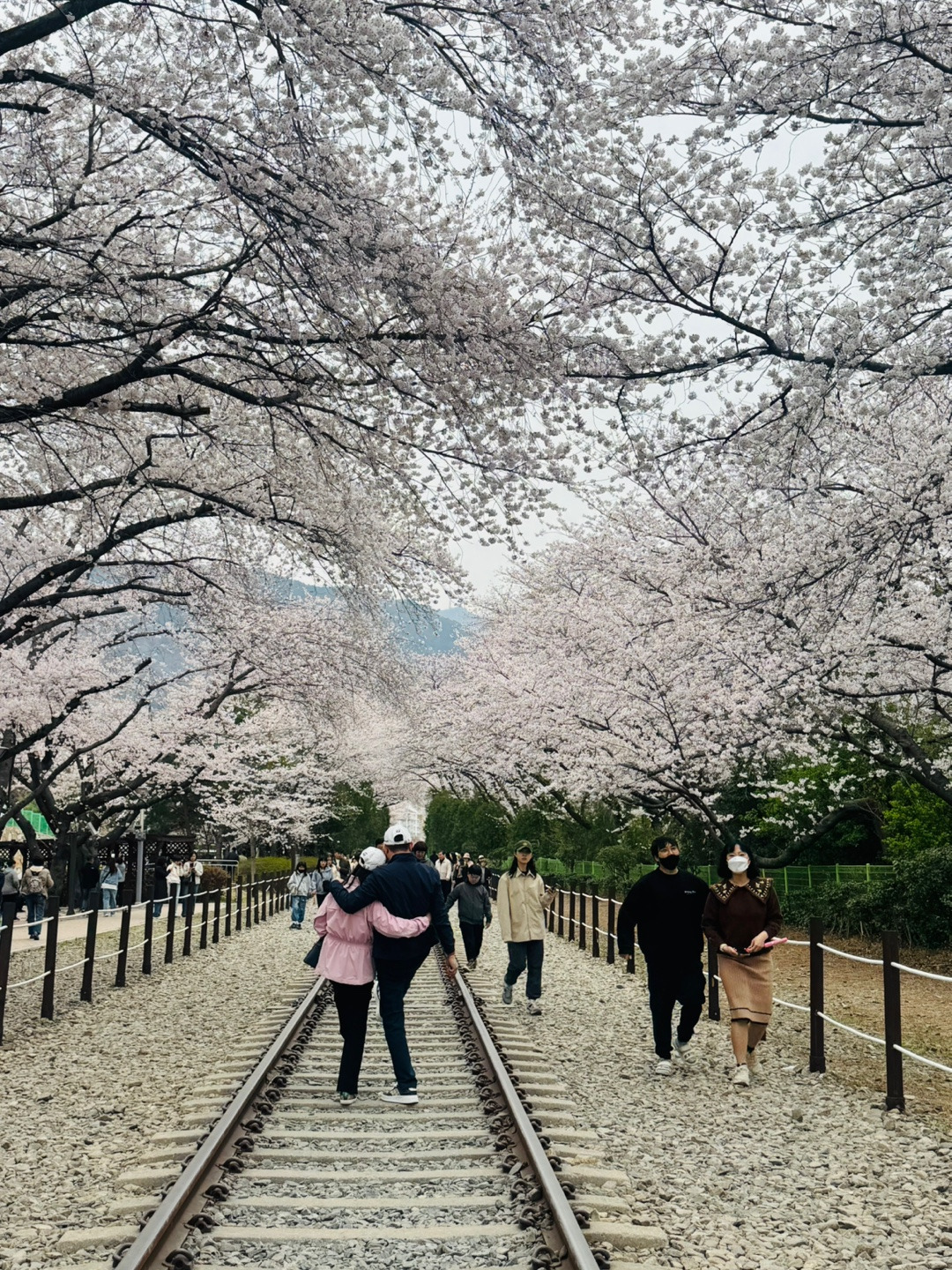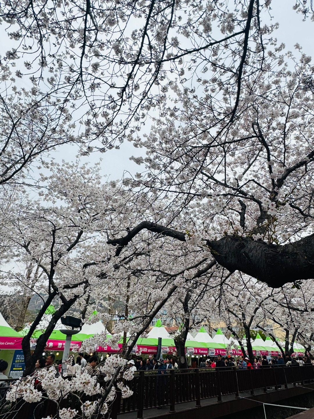저번주에 이어 이번주도 벚꽃을 즐기기 위해 출발한 진해군항제 일정!!저번주보다 이번주가 더 벚꽃 개화가 많이 되었을 것 같아 기대감을 안고 출발했어요. 차가 별로 막히지 않아 일정 시간보다 조금 일찍 도착했고, 저번주보다 벚꽃 팝콘이 아주 이쁘게 열려 사진 찍기 최고였어요. 경화역에서 벚꽃 경치를 즐기고, 여좌천으로 이동하여 여좌사거리에서 도보로 20정도 걸어서 여좌천 로망스다리에 도착했는데 역시 벚꽃 명소답게 벚꽃이 흐르러지게 펴있어 여좌천 다리를 쭉 걸어갈 때마다 감탄사가 절로 나왔어요. 전국에서 벚꽃하면 아!진해!라고 하는 이유가 있었어요. 여좌동 일해에 펴있는 벚꽃들이 길마다 반겨주고 있어서 꽃의 동산에 온 느낌이였어요.