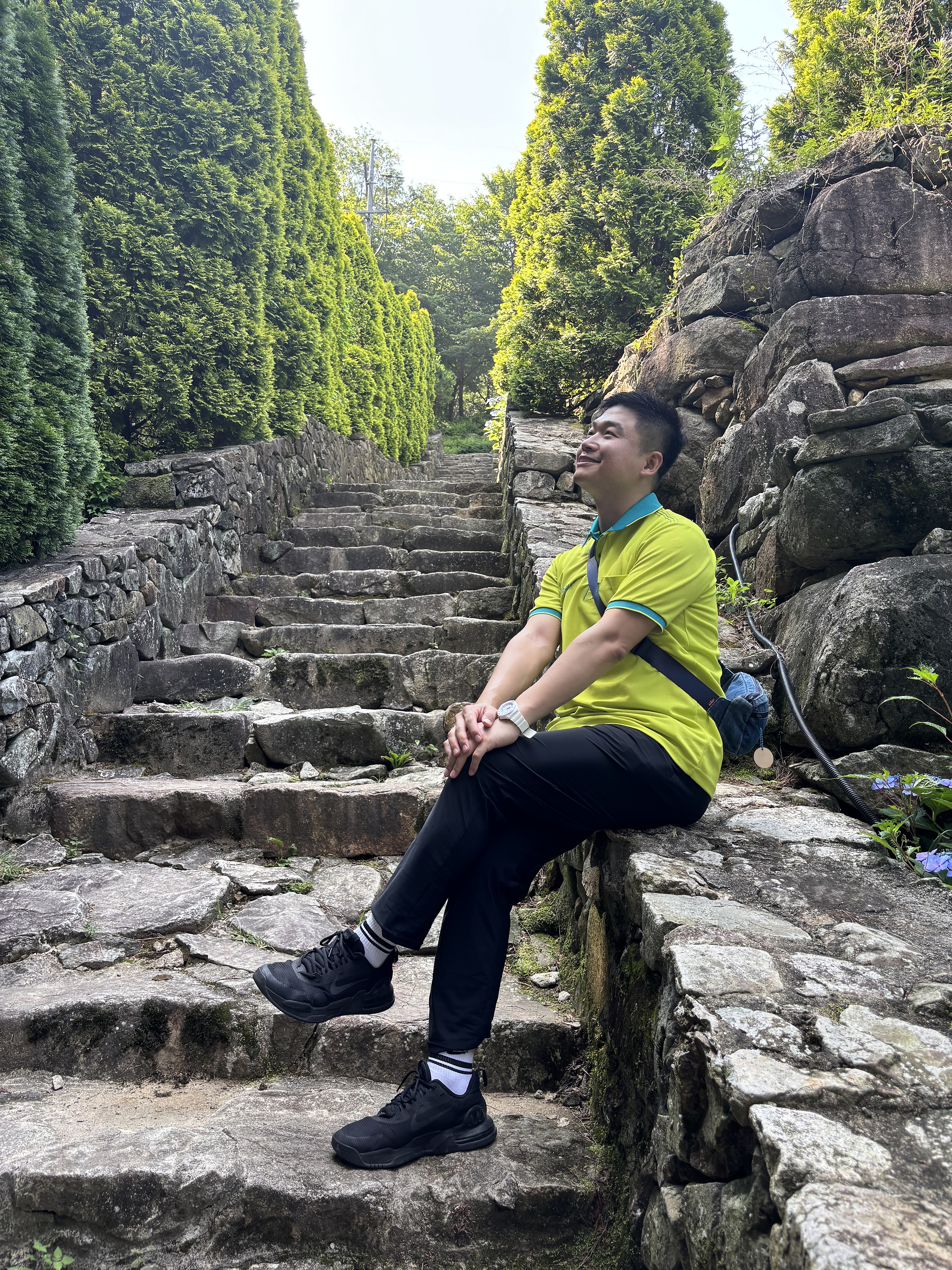 정원 곳곳엔 각양각색의 테마가 조성되어 있어 걷는 재미가 있더군요.. 앤틱한 분수대, 유럽풍 벤치, 그리고 메타세콰이어길. 나무 사이로 쏟아지는 햇살이 그림처럼 길을 만들었고, 그늘 아래 앉아 수국을 바라보며 찍은 사진 한 장은 오래도록 간직하고 싶은 한 페이지가 되었습니다.