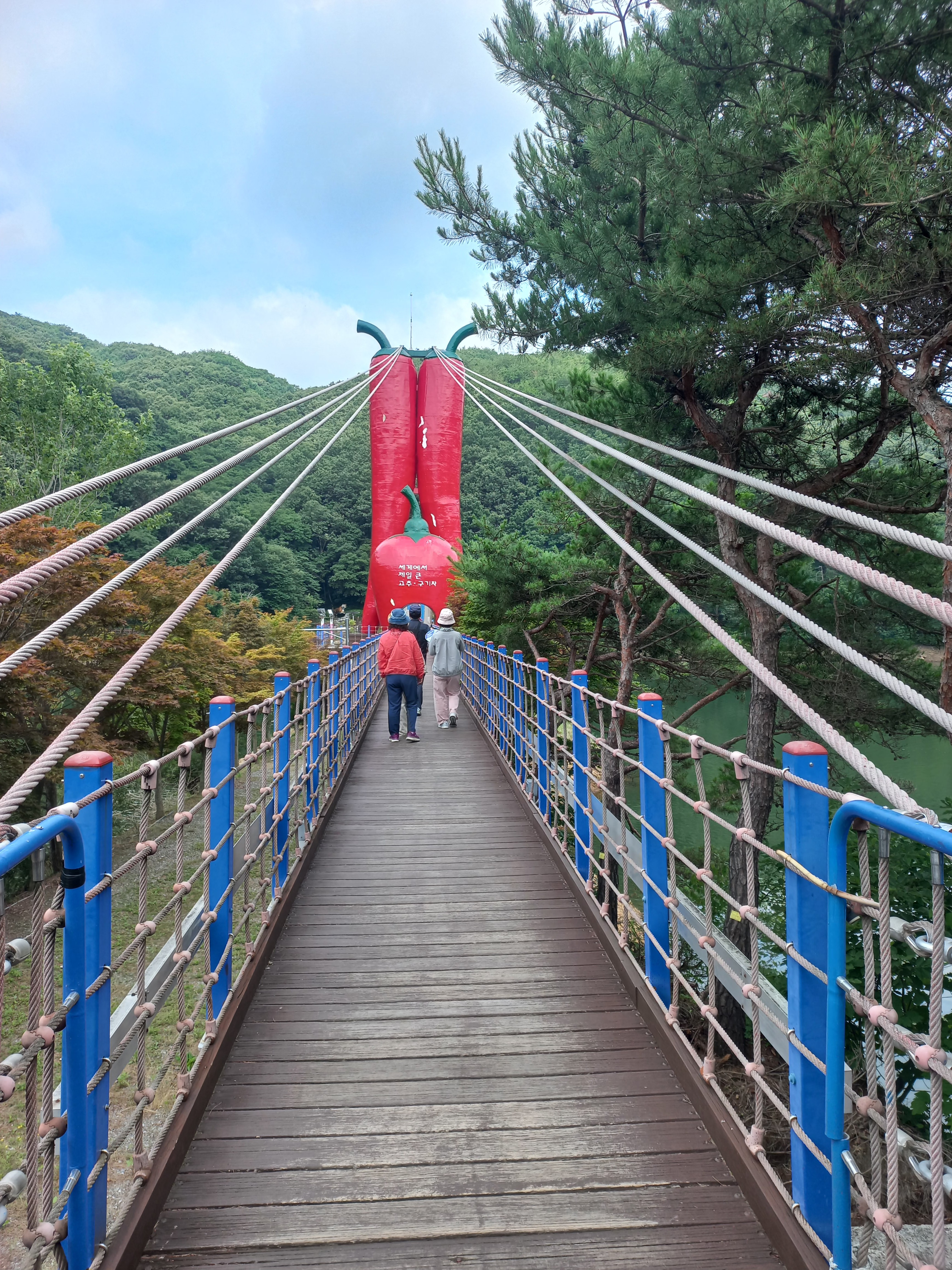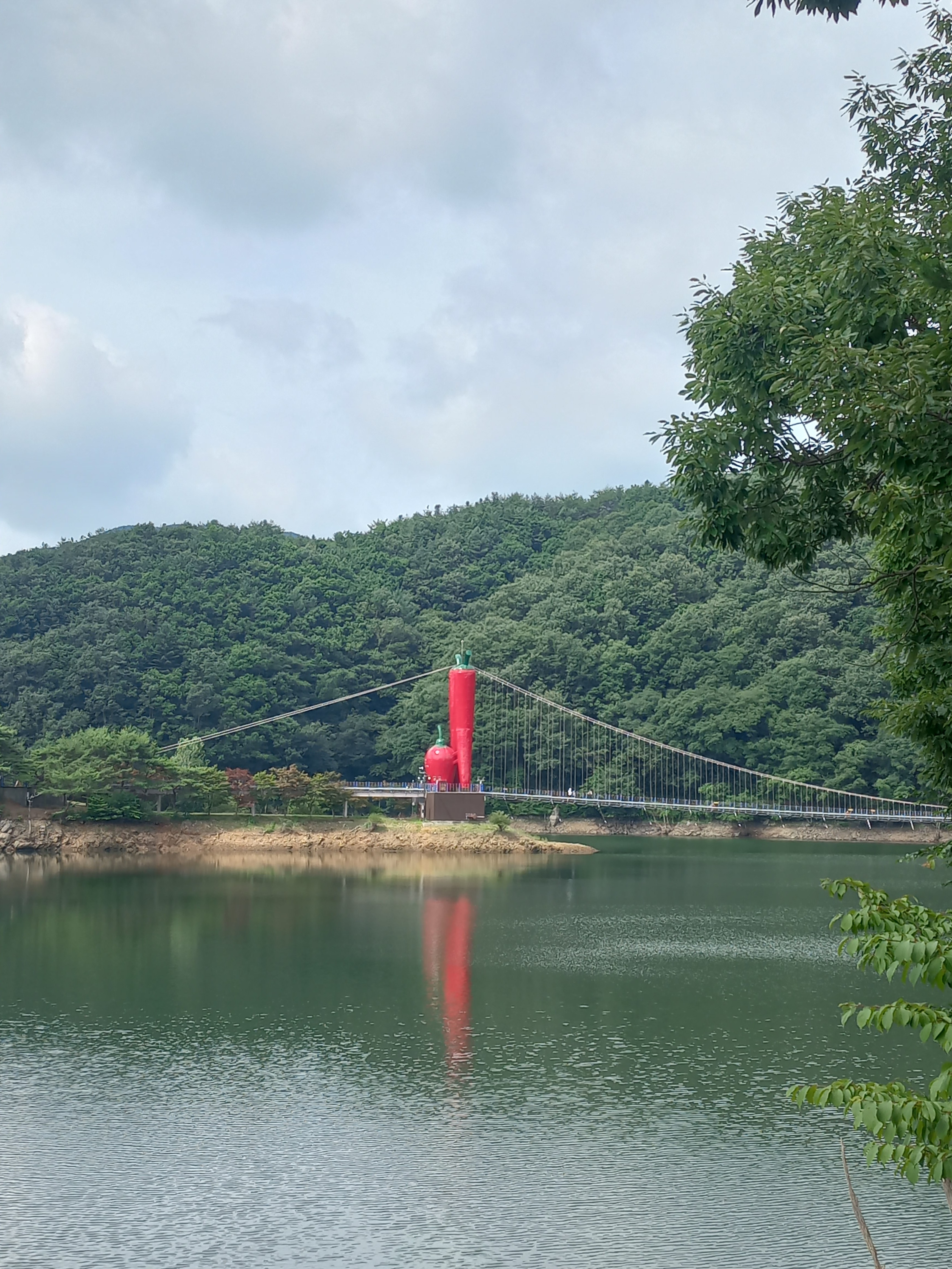 더위를 피해서 떠나간다. 일요특가 받고 대구를 떠나간다. 첫번째 코스 청양 천장호 출렁다리. 9시40분 청양고추의 매운맛처럼 천장호에 도착하니 바람이 어디서 그렇게 불어오는지, 몸과 마음을 시원하게 힐링시켜 준다. 천장호라는 호수가 있고 울창한 숲이 호수를 감싸고 우거져 있는 칠갑산 자락이 아닌가! 찜통더위 탈출을 제대로 한 셈이다. 덥다고 집에만 있을 것이 아니다. 역시 직립보행의 인간임을 실감케 했다. 걷는 것이 좋아 좋아!