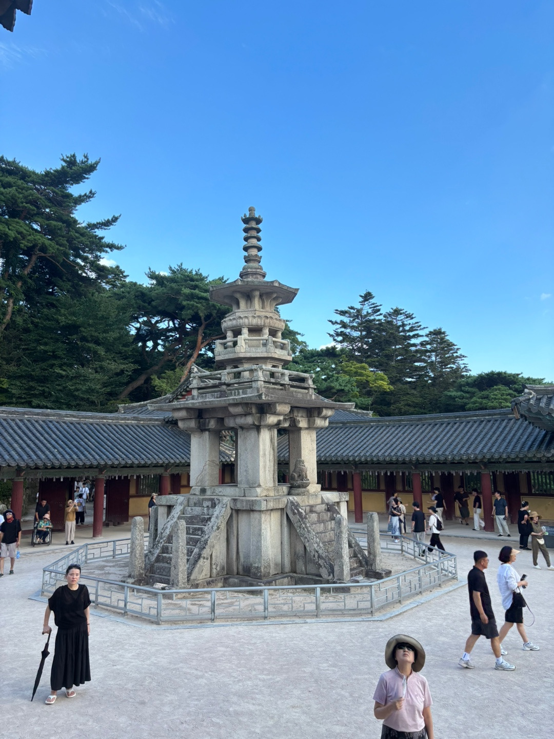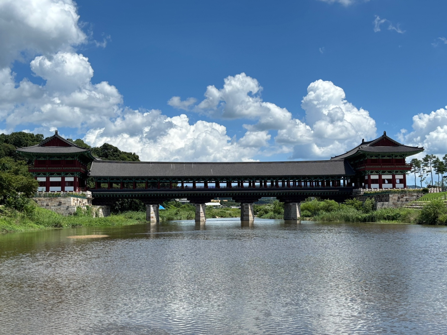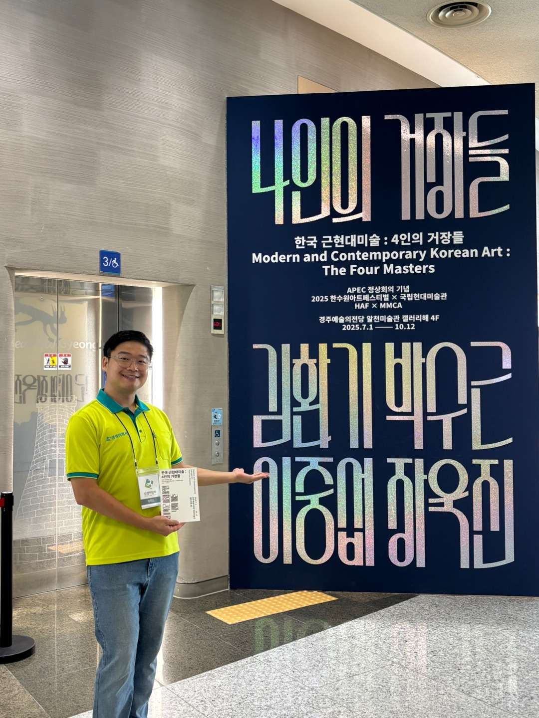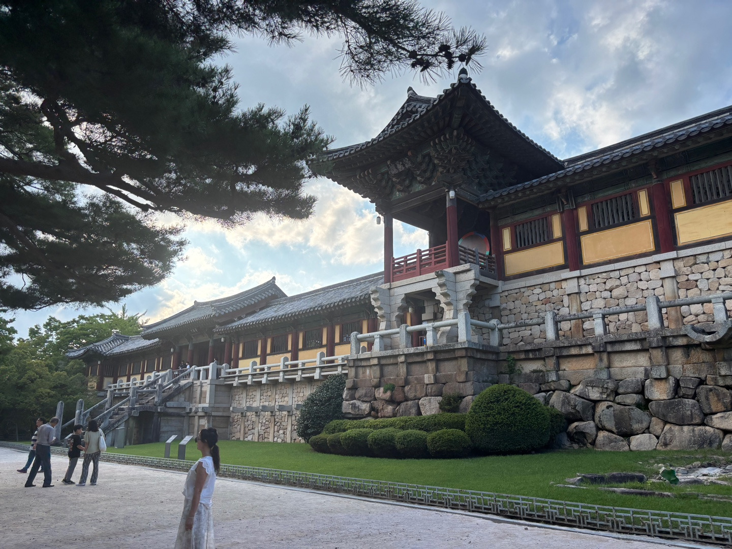 아침 햇살 속, 41명의 고객님과 함께한 버스는 여름 특유의 활기로 출발했습니다. 첫 목적지 근현대미술관. 시원한 전시관 안에서 네 거장의 작품을 바라보니, 잠시나마 더위도 잊고 예술의 색감에 빠져들었습니다. 점심때 찾은 교촌한옥마을. 뜨거운 햇볕 아래 기와지붕이 늘어선 골목을 걸으며, 시원한 아이스크림을 먹으니 그 맛이 꿀맛이었습니다. 여름의 피로가 사르르 녹는 순간이었지요. 석굴암에 오르는 길, 숲 사이로 불어오는 산바람이 땀을 식혀 주었습니다. 석굴 안 부처님의 온화한 미소는 마치 더운 여름날 마음에 건네는 그늘 같았습니다. 불국사에서는 푸른 하늘과 금빛 기와가 눈부시게 어울렸습니다. 해가 기울며 붉게 물든 하늘을 뒤로하고, 우리는 하루의 햇살 같은 추억을 품고 경주를 떠났습니다. 버스 안 창문 너머로 흘러가는 여름 들판이, 마지막 인사를 건네는 듯했습니다.