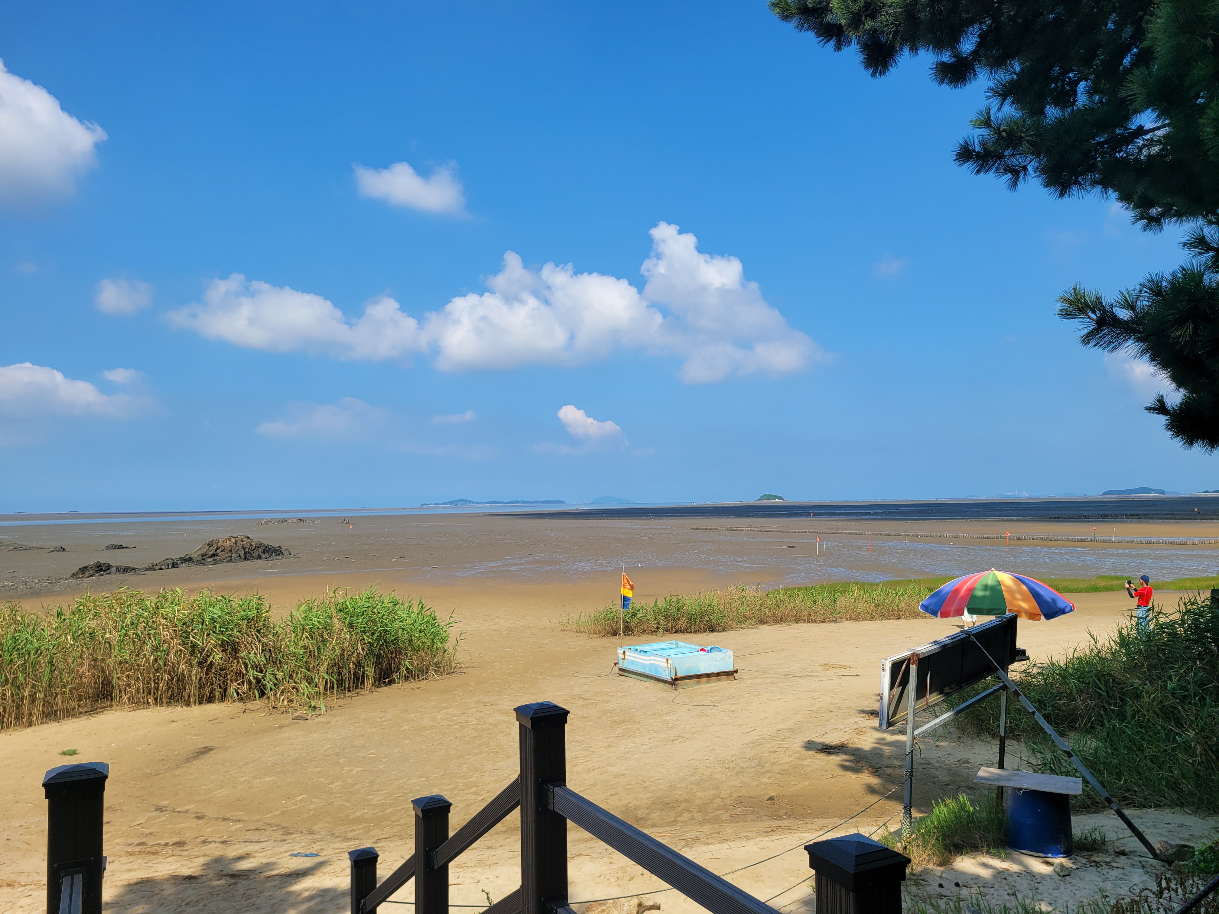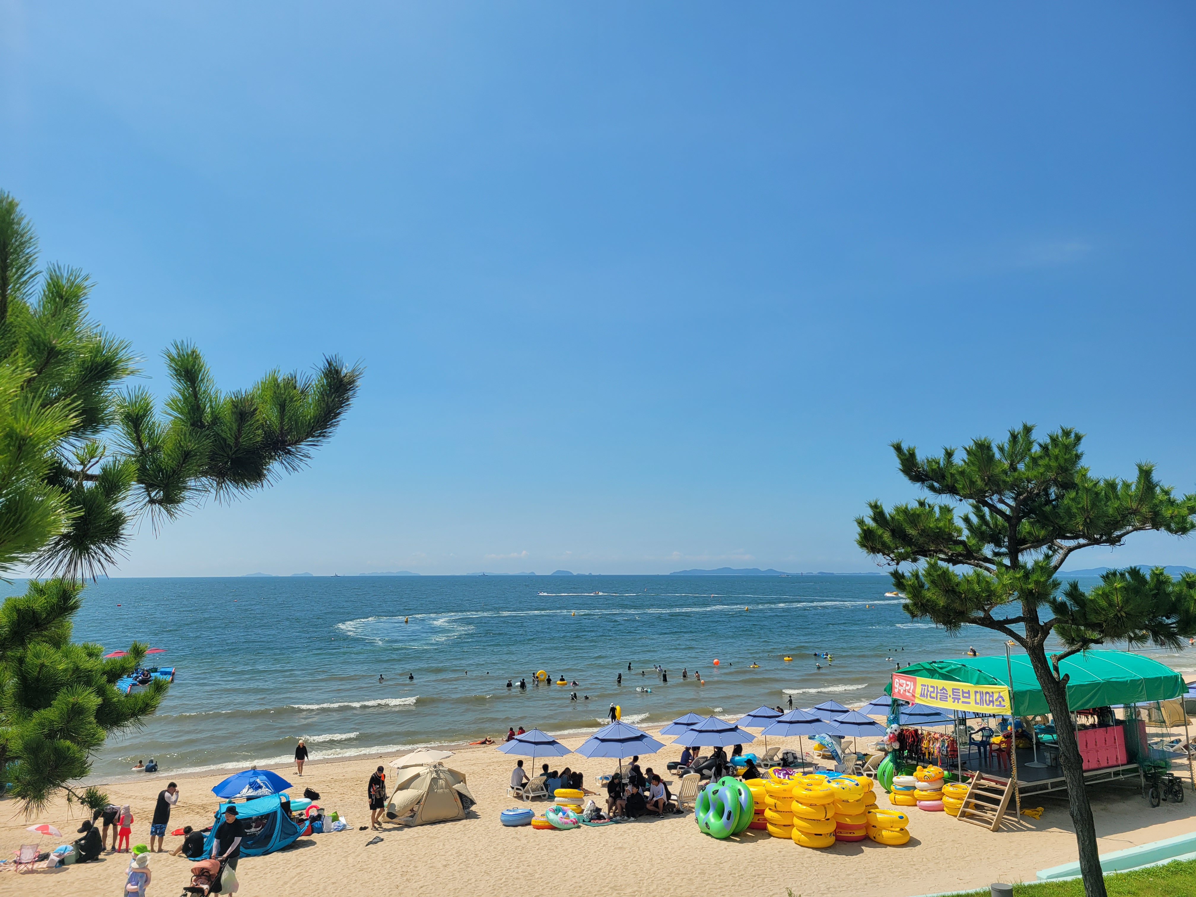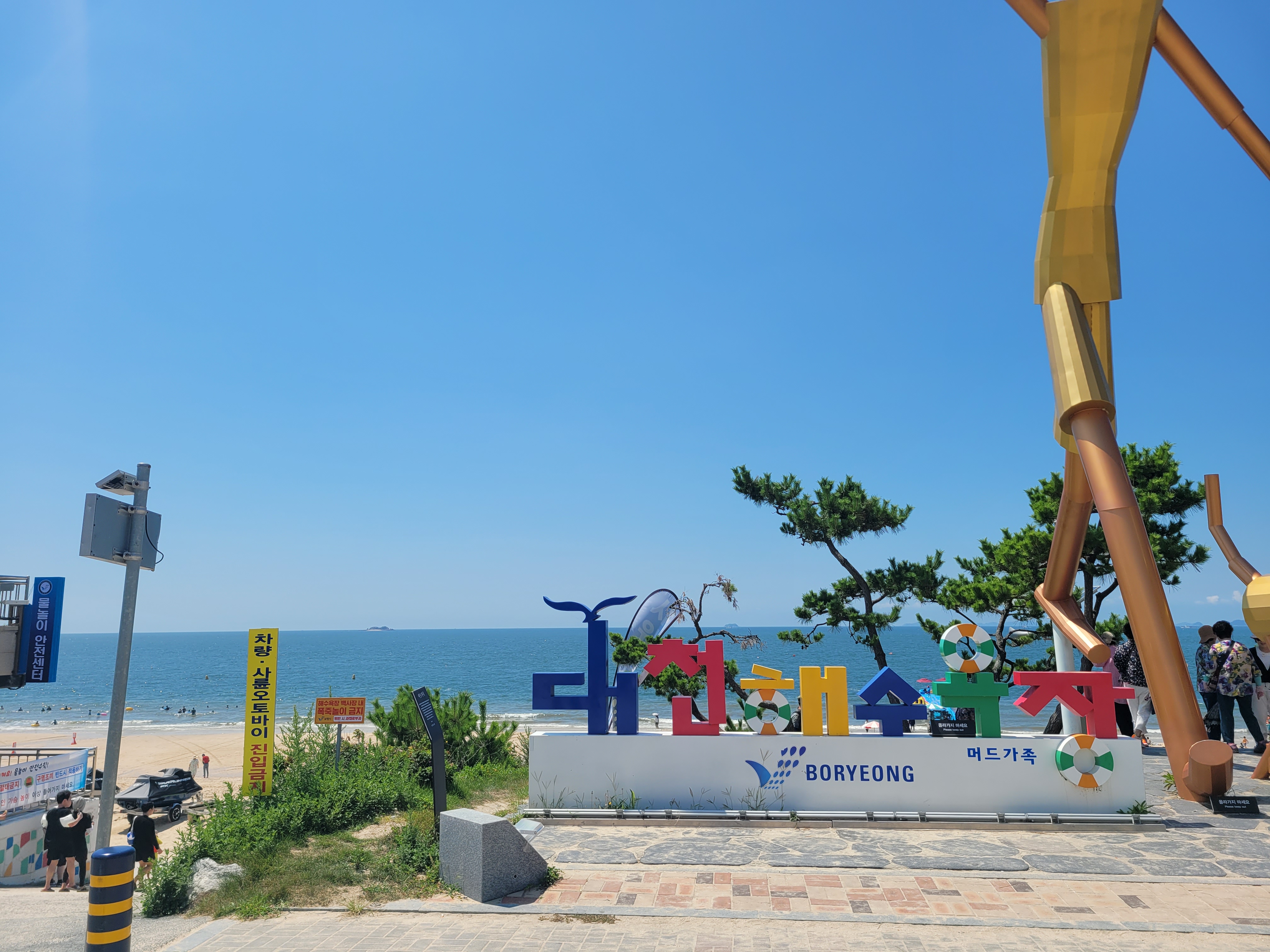 다음장소, 점심때쯤 도착한 보령 대천 해수욕장, 가이드님이 보령머드축제로 유명한 곳이라고 했는데, 서해안 최대 해변답게 백사장 길이도 상당하고, 모레도 깨끗했다. 해변가에 조개구이, 해산물 등 다양한 서해 먹거리들이 많아서 좋았다.