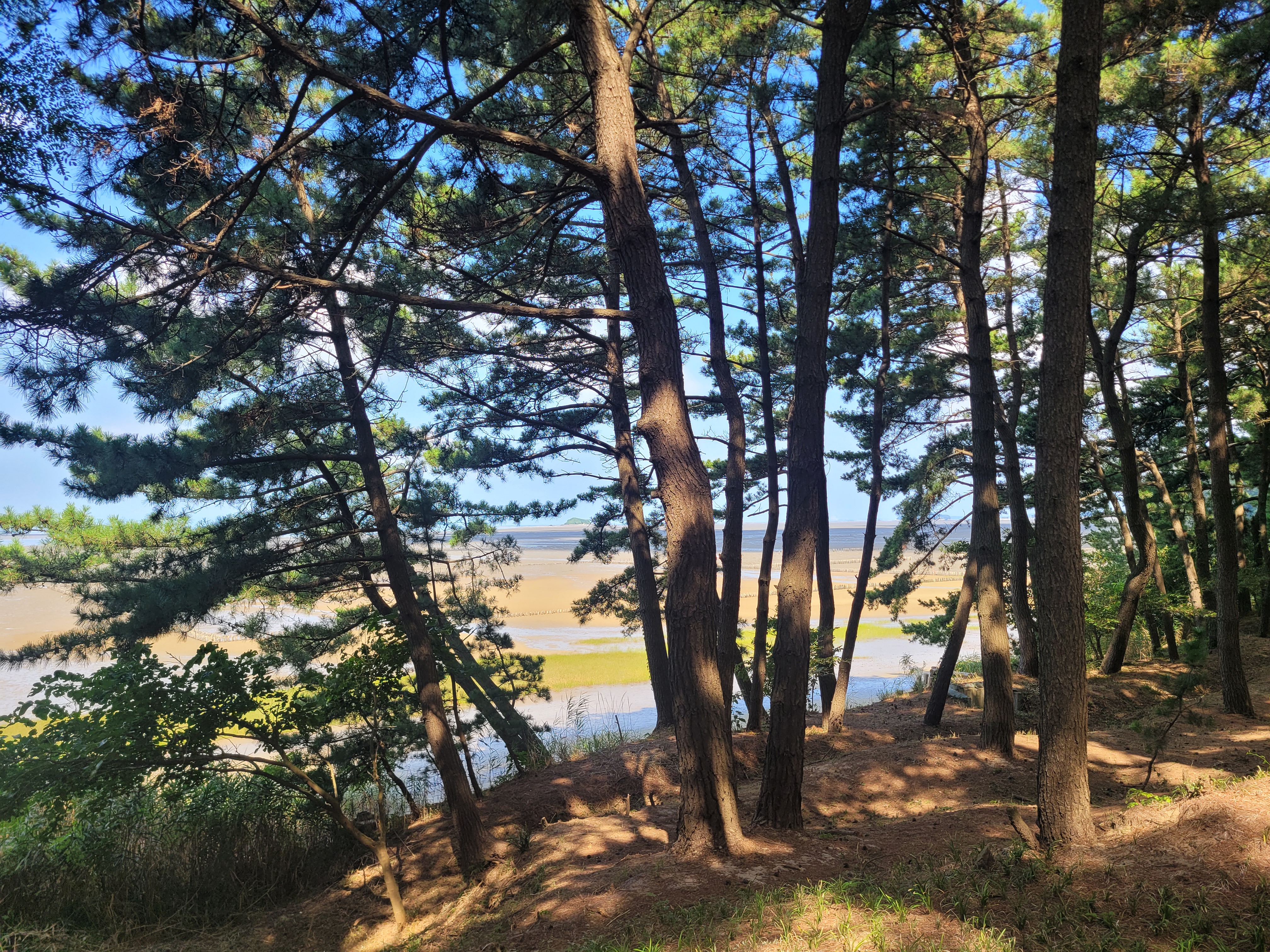 무더운 8월 서해쪽으로 떠난 삼성 버스여행 ~ 오전에 서천 장항 송림산림욕장에 도착, 드라마 눈물의 여왕,CF촬영지로도 유명한 장항 송림산림욕장은 서천 갯벌을 끼고, 울창한 소나무숲 산책길이 해안을 따라 이어져있는 숲으로 심신을 휴식할수있는 편안한 장소였다. 무더위만 아니었으면 최적의 장소라고 생각된다.