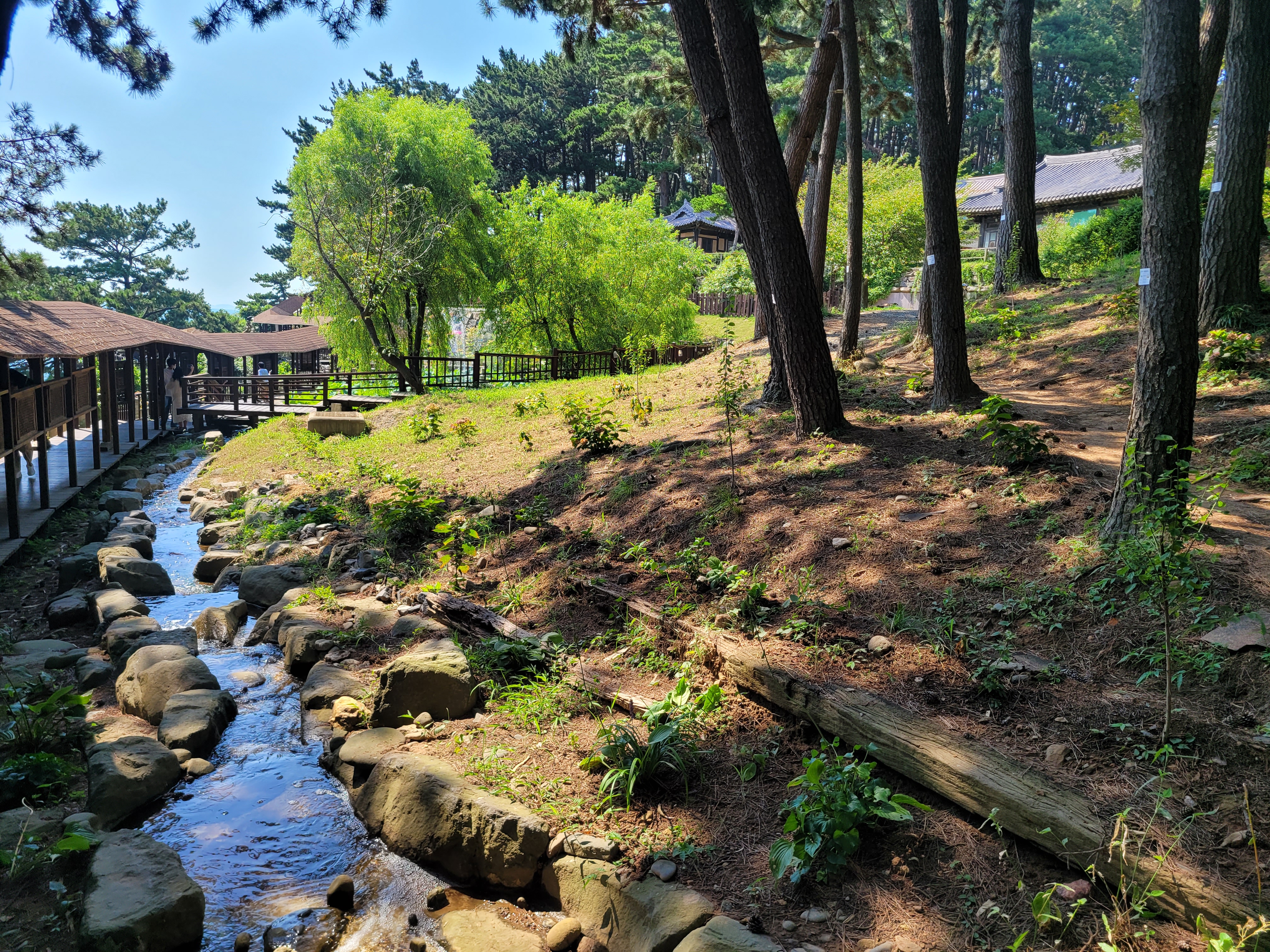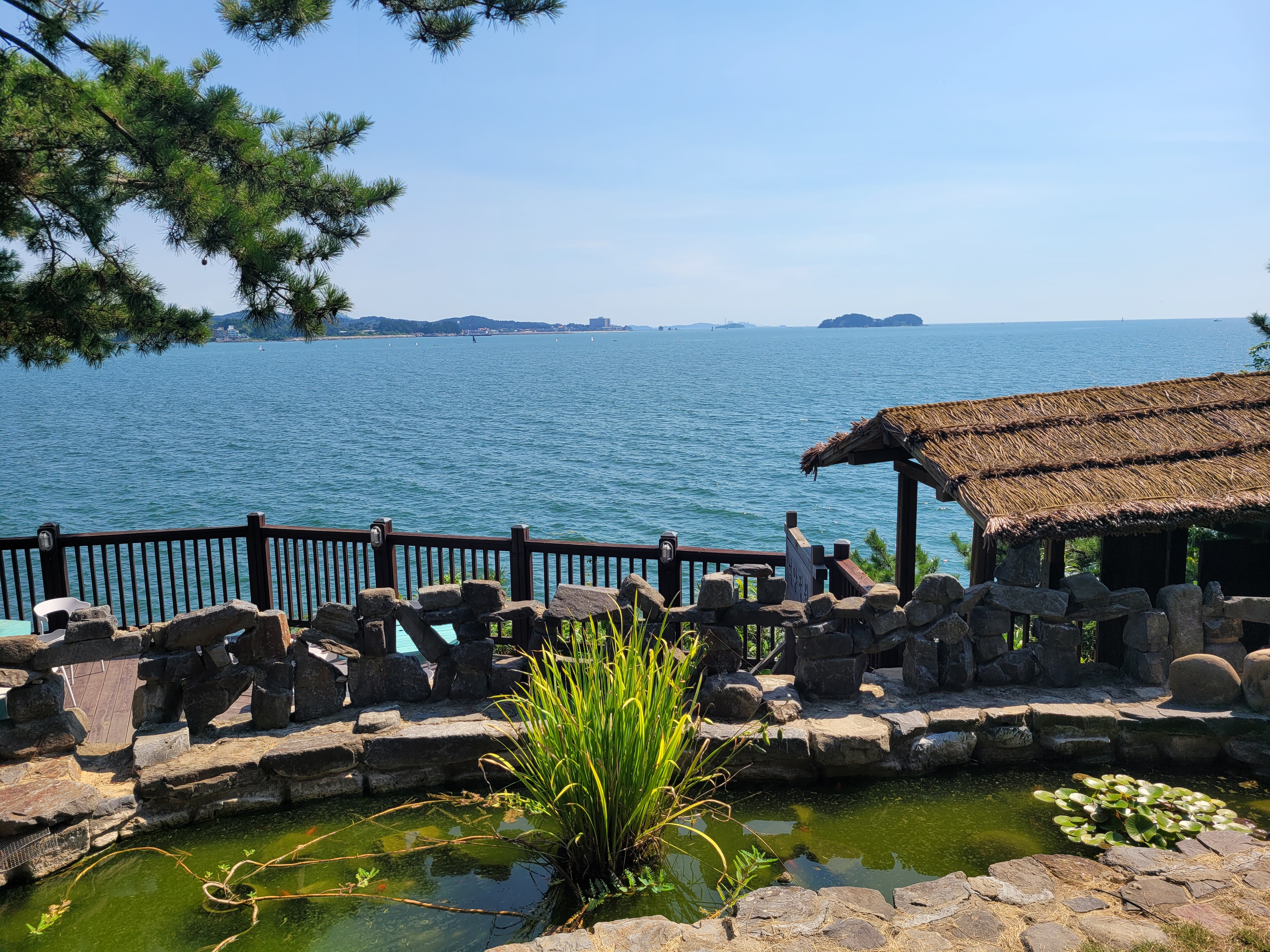 마지막 장소로 보령 상화원에 도착, 상화원은 죽도에 꾸며진 멋진 정원으로 바다를 바라보며 섬을 한바퀴 걷는데 기대이상으로 경치 뷰가 좋은곳으로 또 오고 싶을정도의 장소였다. 엄청 무더운 시간대였는데, 상화원 입장하니 아이스커피와 떡을 나눠줘서 잠시나마 더위를 식혔다.