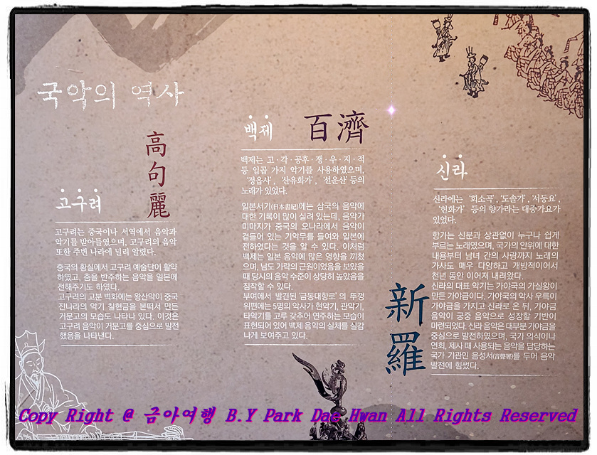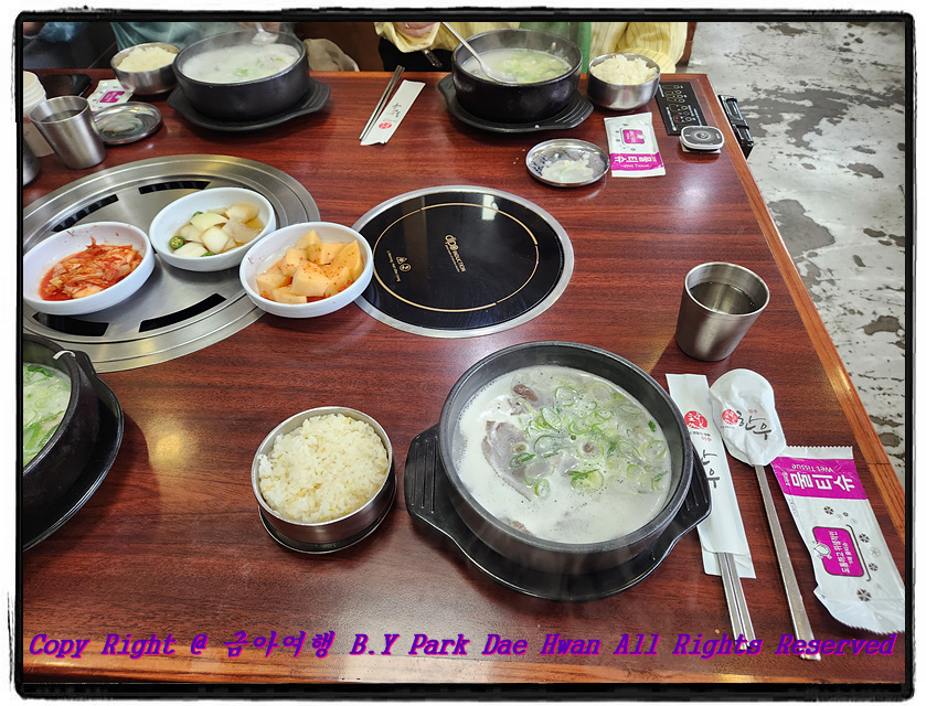 09월 20일 토요일 여행 당일 아침 대구에는 많은 비가 내렸습니다. 저는 "비가 많이 내린다고 해서 내가 여행 안갈 것 같냐? 억수같이 퍼부어도 나는 여행간다" 생각하고 탑승장소인 "대구 법원 건너 농협" 탑승장에 도착하였습니다. 이 날 가이드님으로는 개인적으론 3번정도 뵙는 김민정 가이드님께서 수고해주셨습니다. 버스는 정확히 08시40분에 대구 법원 건너 탑승장을 출발하였습니다. 버스는 대구 법원 건너 농협을 출발하여 반월당역, 두류 광장코아, 성서홈플러스까지 모두 경유하였으며 45인승 버스에 만차로 이동하였습니다. 성서 홈플러스 출발 이후 가이드님 소개 및 일정 소개를 하시고 GPS기능과 하이패스 기능이 있는 뺏지를 나눠주시고 일정표를 나누어 주셨습니다. 이 날 일정은 다른 여행일정과 달리 특이한 점이 첫 일정이 "이른 점심식사" 였습니다 ㅎㅎ 점심식사를 10시50분에 하는 경우가 거의 없었는데 이번 여행은 점심식사를 일찍 하게 되었습니다. 아무튼 점심식사를 한 후 난계국악축제장으로 이동하여 난계사와 국악박물관을 둘러보고 포도따기 체험장 이동하여 포도따기 체험 후 영동포도축제를 둘러보는 코스였습니다. 하루만에 난계국악축제, 영동포도축제 등 2가지의 축제를 즐길 수 있는 코스였습니다.  버스는 대구 법원 건너 농협 출발한지 약 1시간18분만인 09시58분에 김천휴게소에 도착하였습니다. "10시15분에 버스 출발하겠습니다" 가이드님의 멘트를 듣고 하차하였습니다. 원래라면 휴게소 도착하여 호두과자 하나 사먹거나 델리만쥬 하나 사먹었겠지만 이 날 첫 일정이 점심식사 코스였기에 한우탕을 더욱 맛있게 먹고자 휴게소에서 따로 간식사먹지는 않았습니다. 휴게소에서 약 10분정도 휴식 후 다시 출발하였으며 버스는 달리고 달려서 첫 번째 일정인 "영동 이수한우 식당" 에 10시45분에 도착하였습니다 ㅎㅎ "11시40분에 버스 출발하겠습니다" 멘트를 듣고 하차하였습니다. 이 곳은 1층은 한우 구입가능한 가게였으며 2층이 식당이었습니다. 4인1상으로 준비되어있었으며 자리에 앉아서 조금 기다리니 한우탕이 나왔습니다. 설렁탕 느낌이 나는 한우탕이었는데 속도 든든하고 고기 양도 많고 맛있게 잘 먹었습니다^^ 점심을 맛있게 먹고 다음 여행지인 "난계국악축제장" 인 "난계사 & 영동국악박물관" 에 도착하였습니다. 이 곳에선 약 1시간10분 정도의 자유시간이 주어졌습니다. "축제도 봐야하고 난계사도 둘러봐야하고 박물관도 봐야하는데 1시간10분이면 충분한가?" 생각했는데 시간이 상당히 여유로웠습니다 ㅎㅎ "영동 난계국악축제" 행사장 입구 입니다. 난계사로 가는 길에 담아본 "난계 박연선생 동상" 입니다. 난계 박연선생은 우리나라 국악에서 뛰어난 업적을 남긴 3인인 "3대 악성" 중 한명 입니다. 왕산악과 우륵과 더불어 박연 선생이 3대 악성이며 박연 선생은 조선 초기 음악을 정리한 음악이론가이자 문화예술 행정 관료이셨습니다. 난계사 가는 길에 담아본 포토존 입니다. "영동 난계사" 입니다. 난계사는 우리나라 3대 악성의 한 분인 박연 선생의 영정을 모신 사당입니다. 또 다른 포토존을 사진으로 담아보았습니다.  여행 코스엔 없었지만 난계사 근처에 "영동문학관" 이 있어서 한 번 둘러보았습니다. 영동은 국악의 고장, 와인의 고장이기도 하지만 영동은 문학의 고장이기도 합니다. 영동은 3도(경상북도, 전라북도, 충청남도)를 접경으로 서울과 부산의 중간에 위치한 교통의 요충지 입니다. 동국여지승람에 의하면 영동은 백두대간을 가로지른 소백산맥의 삼도봉, 석기봉, 민주지산 등의 웅장한 산세와 금강의 양산팔경, 한천팔경이 두루 어우러진 산자수명한 곳이라 많은 문인들이 배출될 곳이라고 기록되어 있습니다. 난계사와 영동문학관을 둘러본 후 "난계국악박물관" 에 다같이 모여서 입장하여 국악박물관을 관람하였습니다.      "영동국악박물관" 을 둘러보면서 찍어본 사진들 입니다. 우리나라 국악 연표부터 3대 악성, 정간보, 종묘제례악, 현악기 이해과정, 국악기 창조과정, 세계의 민속악기 등을 알아갈 수 있는 시간이었습니다. 영동 난계국악축제를 둘러본 후 다음 목적지로 "영동 포도따기 체험장" 으로 이동하였습니다. 이 곳에선 50분의 시간이 주어졌습니다. 1.5kg 포도박스를 받아 체험장에 입장을 합니다. 포도따기 체험장에 들어와 찍어본 포도밭 입니다. 맛있는 포도가 익어가고 있습니다. 포도 약 2송이 정도를 담으면 1.5kg 정도가 나오며 체험장 나가는 입구쪽에서 무게를 달아봅니다. 1.5kg 미만으로 담기면 1.5kg에 맞춰서 포도를 더 담아주고 넘어가면 1.5kg에 맞춰 뺍니다 ㅎㅎ 포도따기 체험 후 버스타고 약 35분정도 이동하여 영동포도축제장인 "과일나라테마공원" 에 도착하였습니다. 이 곳에선 약 1시간40분의 자유시간이 주어졌습니다. 작년인가 제작년까지만 해도 영동포도축제가 영동체육관이나 레인보우힐링관광지에서 하였는데 이번에는 과일나라테마공원에서 축제가 진행되었습니다. 영동포도축제장 둘러보기 전 먼저 "레인보우식물원" 에 방문하여 식물원부터 둘러보았습니다. 거창 창포원이나 거제 정글돔가도 이런 식물원이 있