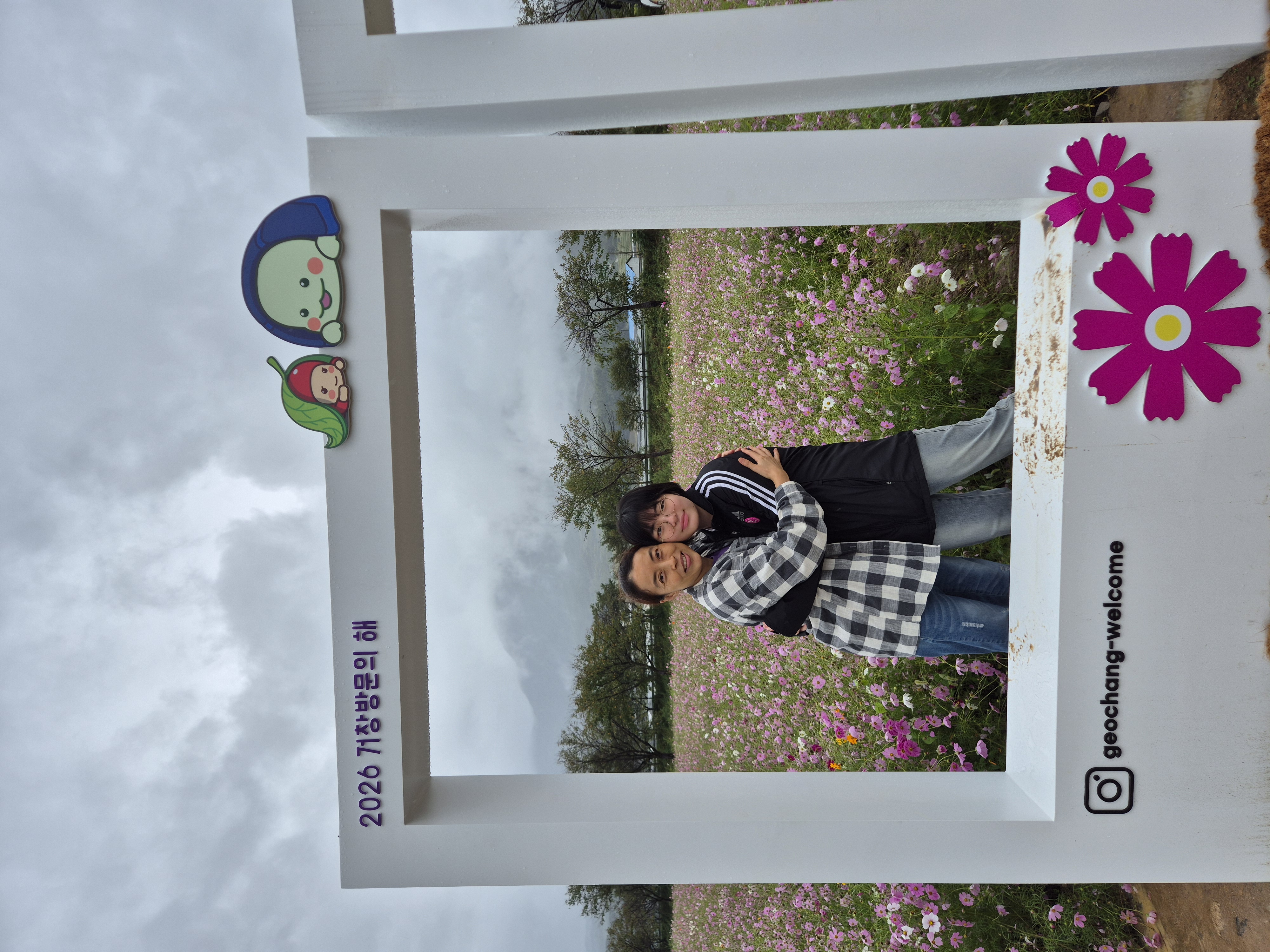 가을 코스모스 밭이다. 비가 운치를 더했다. 오늘 13800보 이상을 걸었다^^ 이제 족욕으로 피로를 풀러 가야지~