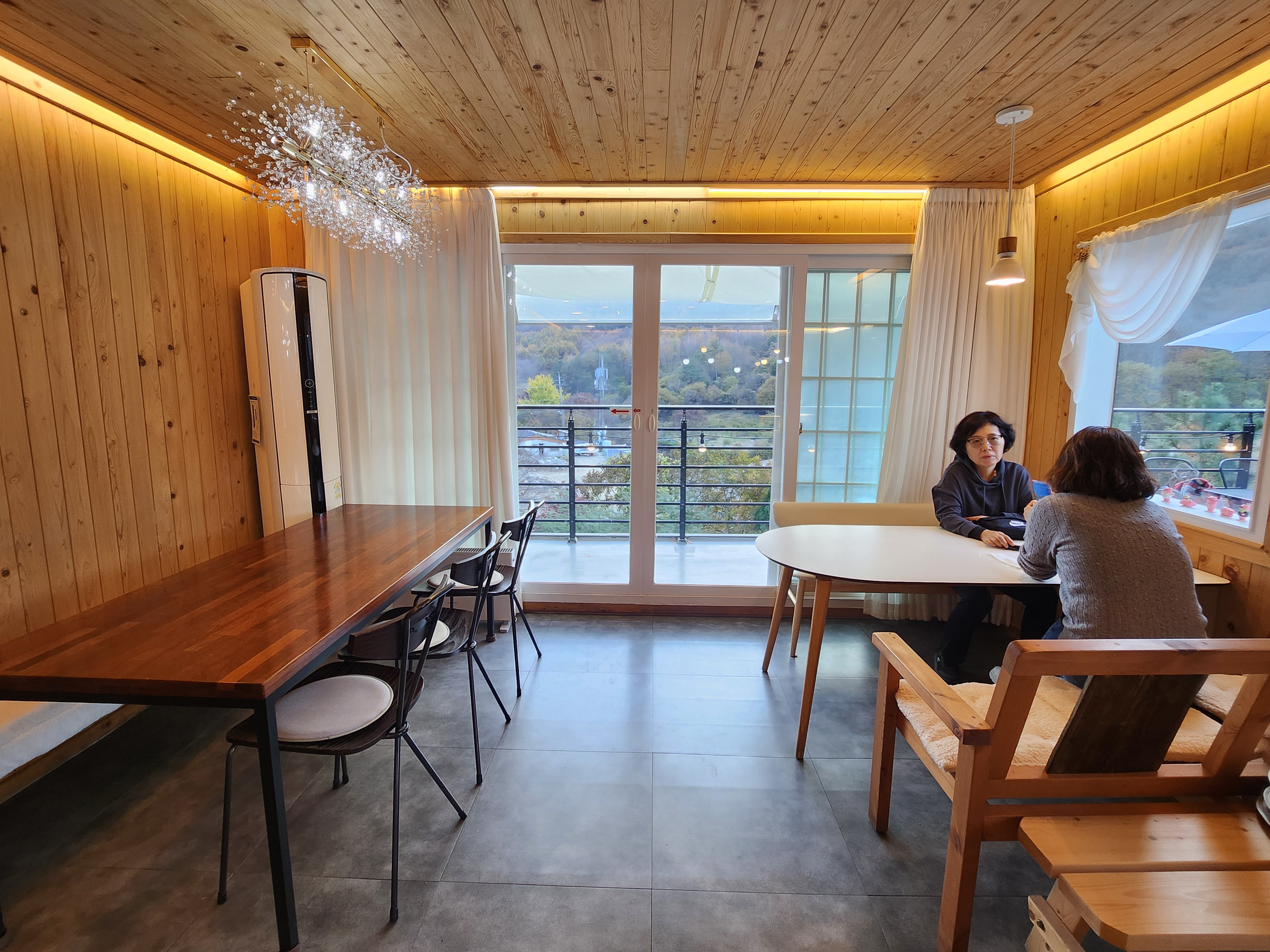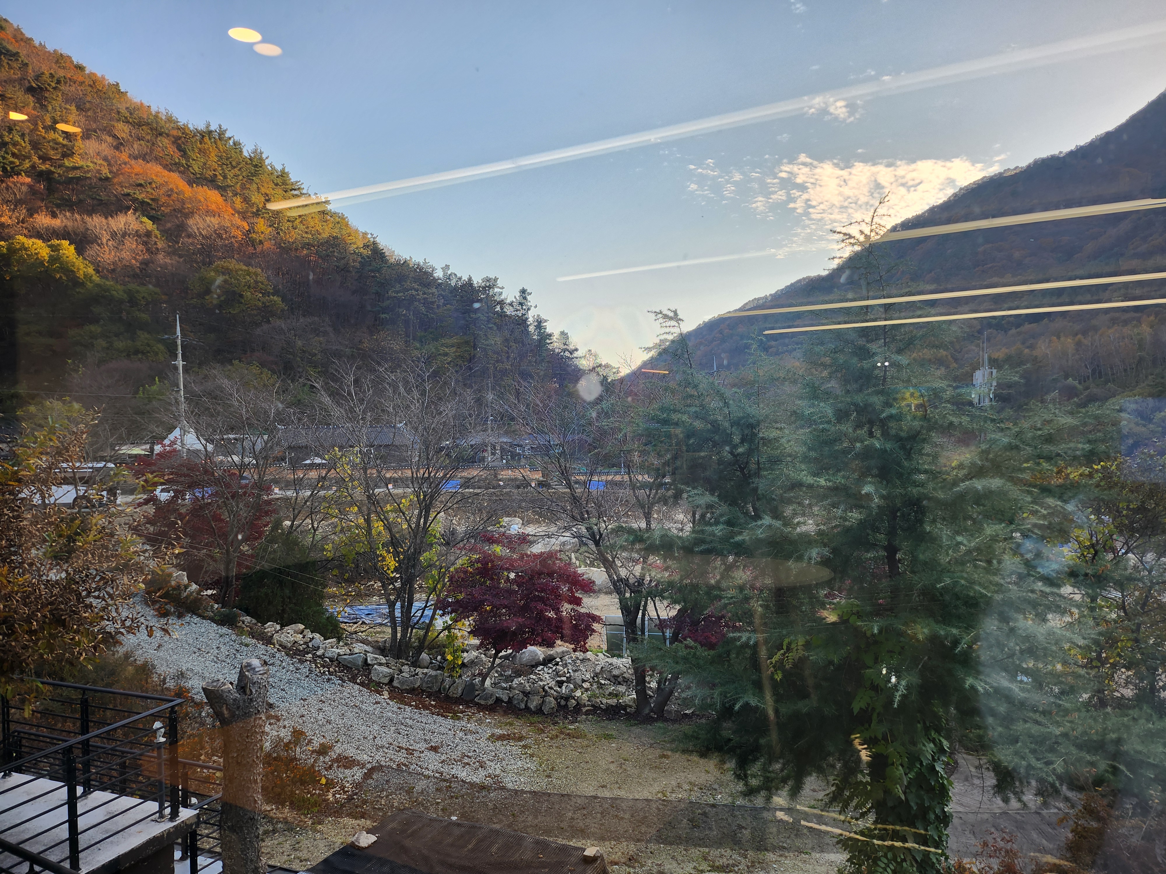 가장 좋았던 곳이라 하트를 남겨봅니다. >.< 창문 밖으론 가을 풍경으로 둘러싸인 한옥들이 보였어요.