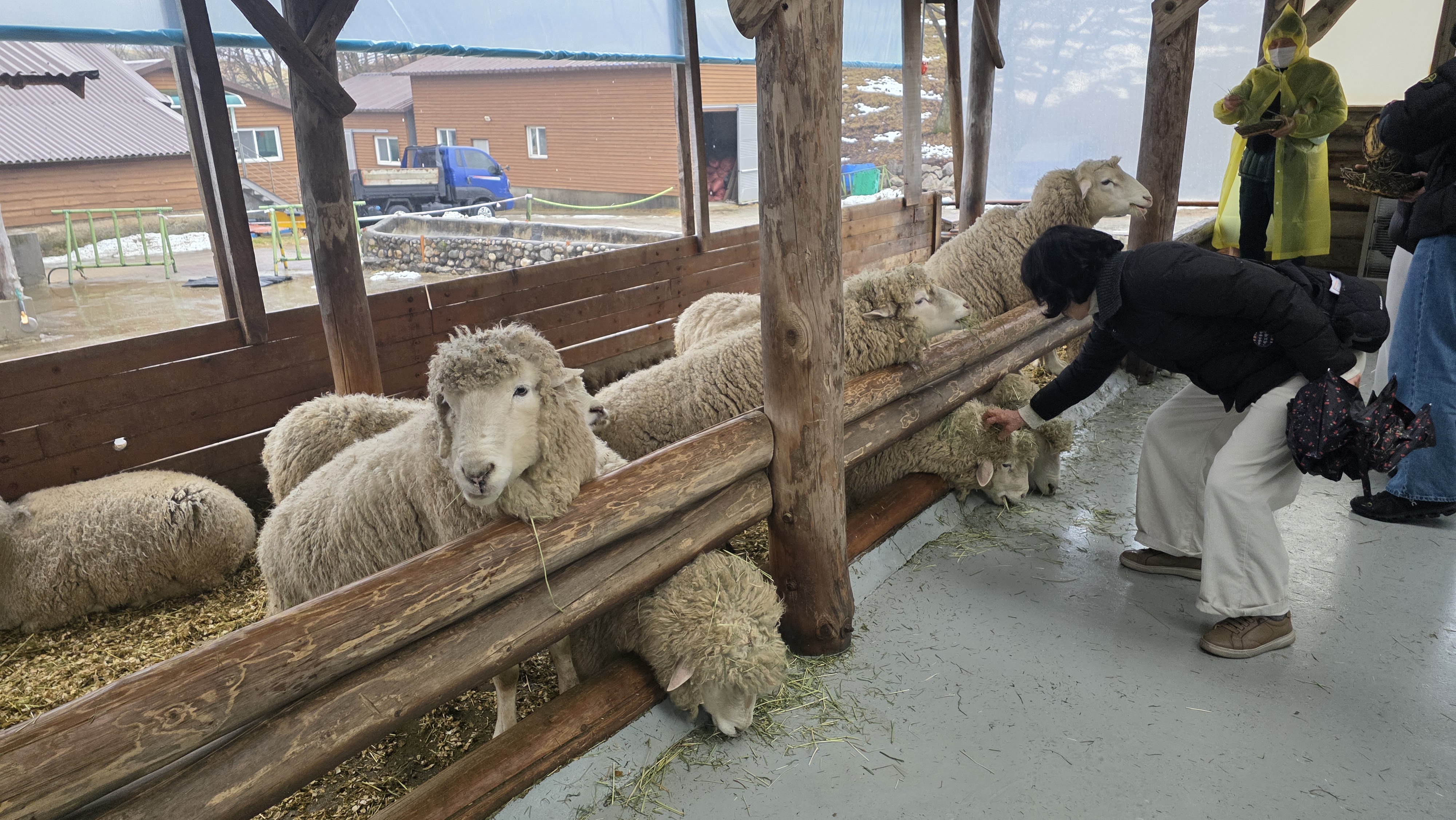 대관령에 도착하여 황태구이정식으로 맛있는 점심을 먹고 비내리는 양떼목장 길을