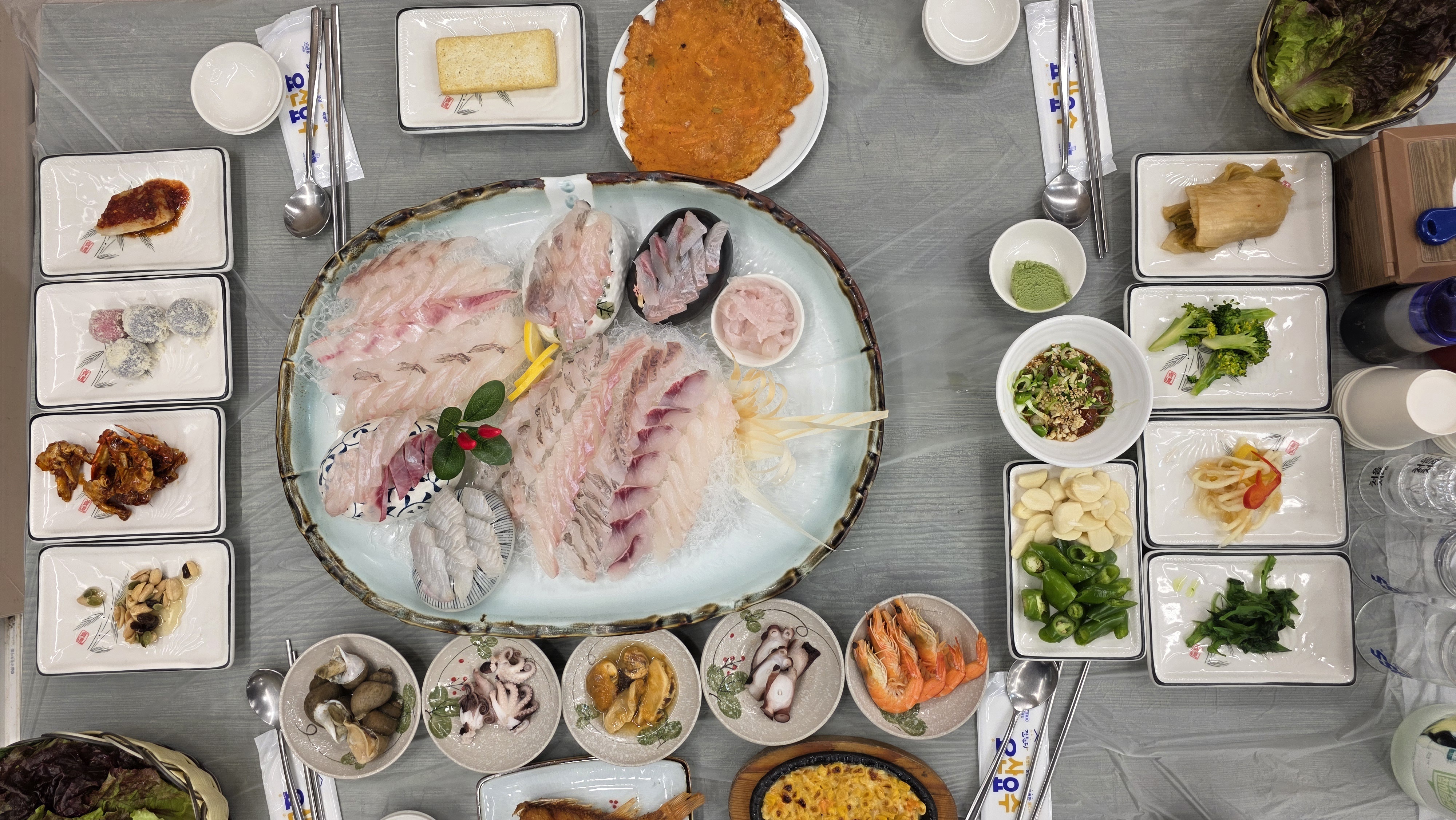 안목해변에서 기념컷도 하고 경포해변을 바라보며 모듬회정식을 먹으며 정겨운 얘기꽃을