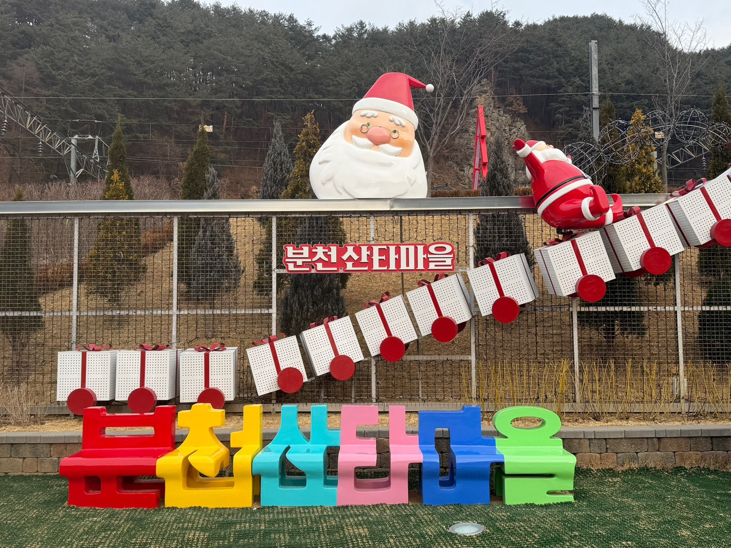 겨울하면 협곡열차 크리스마스하면 분천산타마을~크리스마스주간에 즐기기 딱 좋은 여행코스였어요. 28인승 버스를 타고, 분천 산타마을로 도착을 해서 크리스마스 분위기를 한껏 느낄 수 있는 곳이라 산타관련 조형물들이 곳곳에 배치되어 있어서 연말 기분을 맘껏 즐길 수 있었어요. 분천 산타마을에서 협곡열차를 타고 세상에서 제일 작은 민자역사인 양원역, 하늘도 3평 땅도 3평인 승부역, 예전 탄광촌의 모습을 간직한 철암역끼지 약1시간 가량 협곡열차를 타면서 느린 속도로 천천히 달리는 열차를 여유롭게 즐기며 겨울에 열차를 즐겼어요.